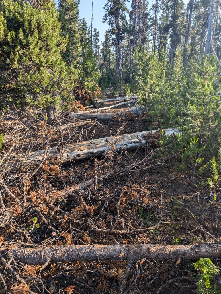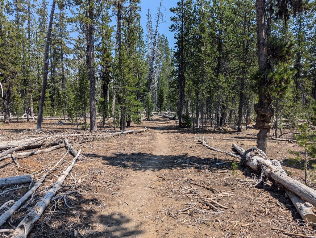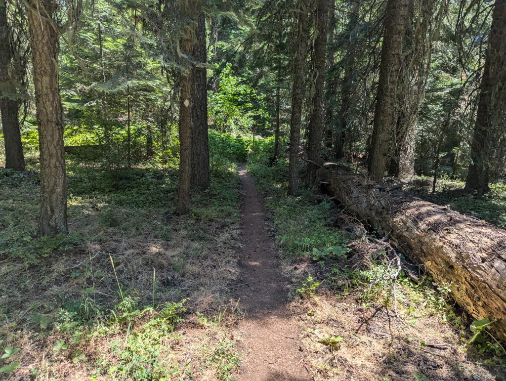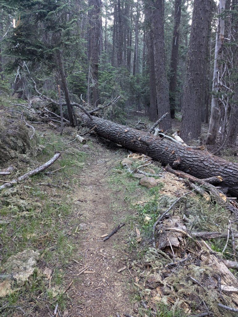 Leider muss ich auch heute wieder häufig über umgekippten Bäume klettern, was ziemlich nervig ist. Immerhin ist es relativ kühl und somit komme ich gut voran. Auf einem Hügel mache ich nach 7 Meilen eine kurze Rast und danach geht es die restlichen Kilometer mehr oder weniger bergab.