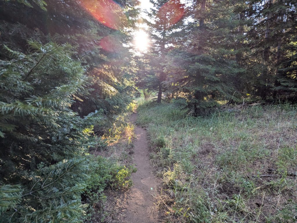In der Morgensonne sieht der Wald sehr schön aus, was auch daran liegt, dass etwas Rauch in den Bäumen hängt, welcher von der Sonne angestrahlt wird.