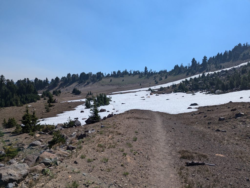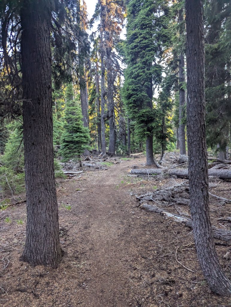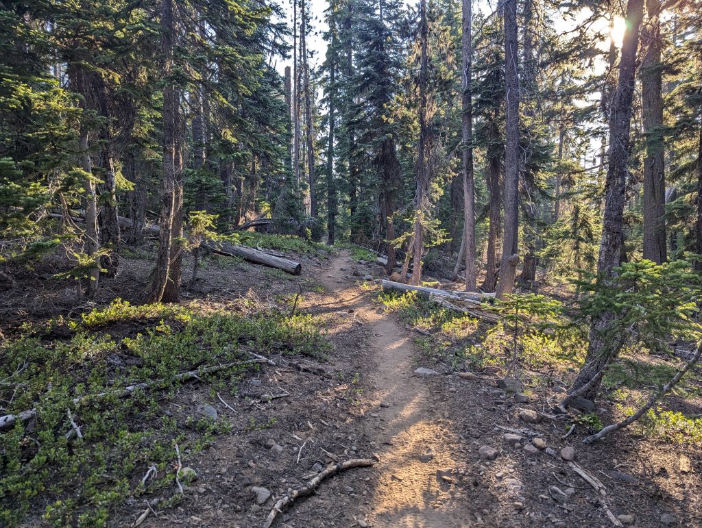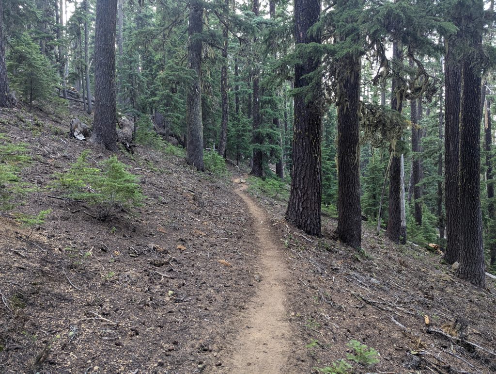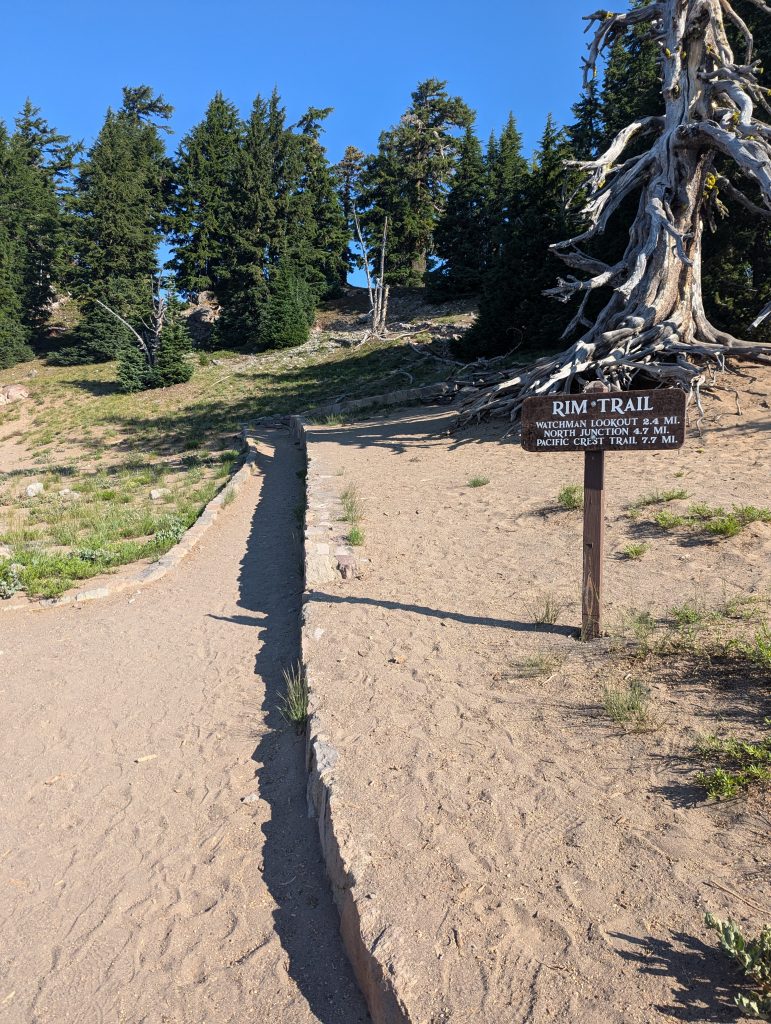 Nach einer kurzen Vesperpause steige ich wieder hinab zum Trail und laufe einige weitere Meilen am Krater entlang, bevor der Weg entgültig abbiegt und mich weiter vom See wegführt.