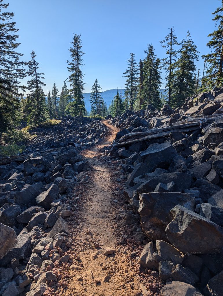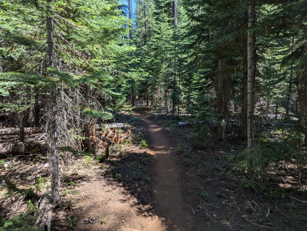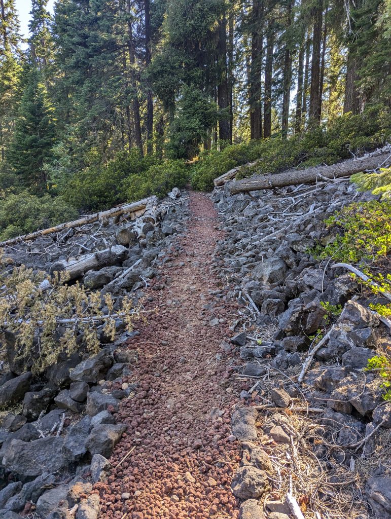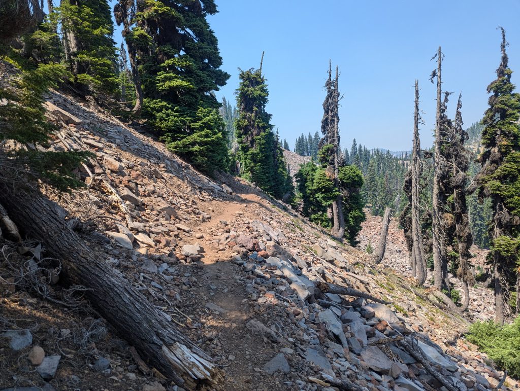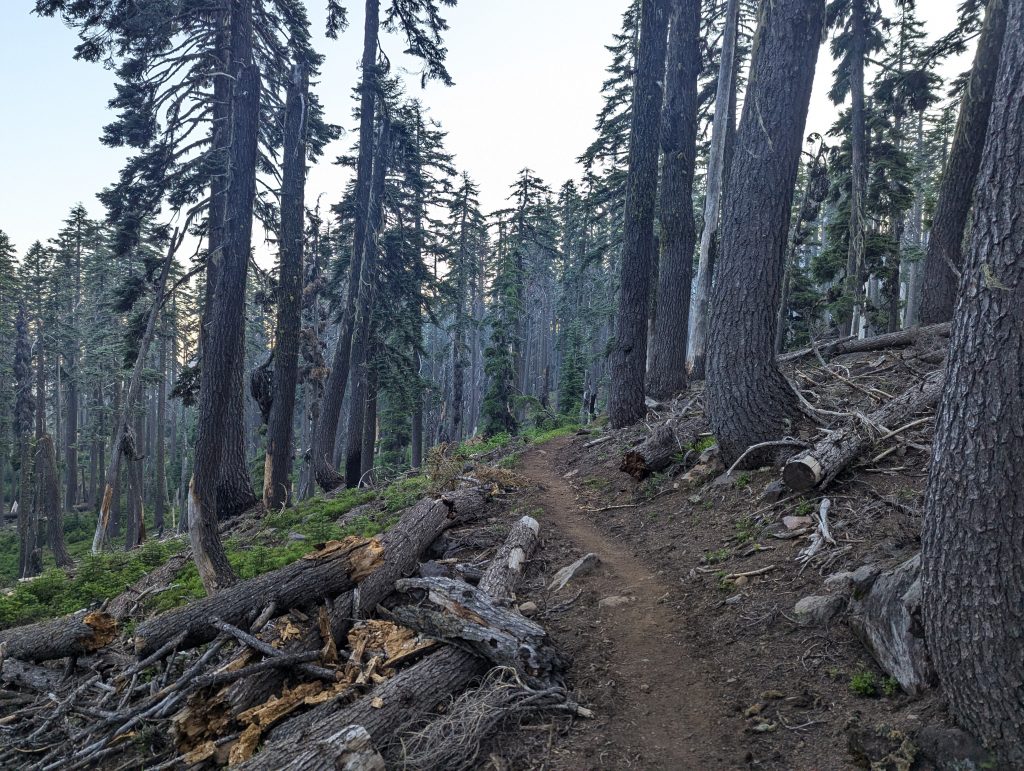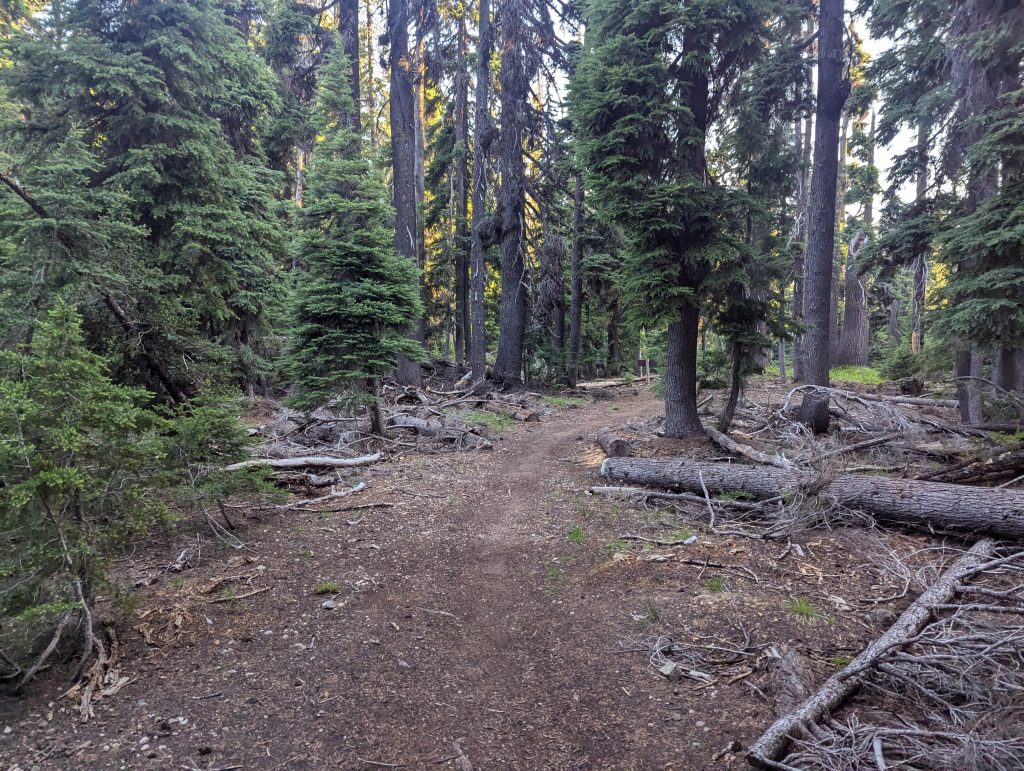Nach einer kurzen Vesperpause steige ich wieder hinab zum Trail und laufe einige weitere Meilen am Krater entlang, bevor der Weg entgültig abbiegt und mich weiter vom See wegführt.