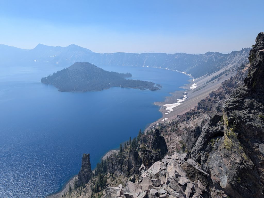 Ich folge dem Rim Trail, welcher mich über den Rand des Kraters weiter in den Norden führt. Immer wieder bekomme ich einen schönen Blick auf den See, welcher durch einen Vulkanausbruch geformt wurde und der tiefste See der USA ist.