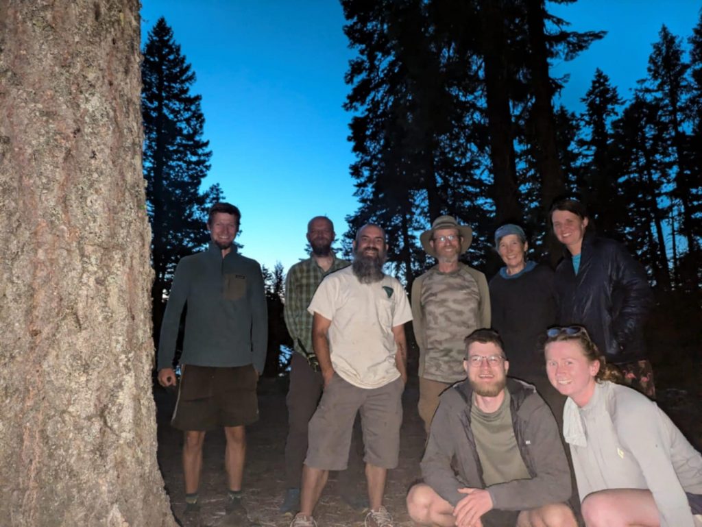 Ich laufe weiter durch den Wald und kurz vor dem Camp, in dem ich heute übernachten möchte, treffe ich auf eine Frau im Golfcaddy, welche anscheinend einen Burger zu einem Hiker liefert. Sie nimmt mich die letzten 200 Meter mit und fragt mich, ob ich auch etwas essen möchte, da sie es mir bringen könnte. Am Campingplatz setzte ich mich zu anderen Hikern und Unterhalter mich mit ihnen, während ich darauf warte, dass mir mein Abendessen geliefert wird. Gegen halb 10 Uhr kommt dann tatsächlich ein Mann und bringt mir einen leckeren Cheeseburger und einen Hotdog. Zusammen mit „Double Dinner“, der kurz vorher eingetroffen ist, esse ich also noch lecker zu Abend. Für die äußerst netten Trail Angels machen wir noch ein Gruppenbild und dann geht es auch schon wieder schlafen, um morgen ausgeruht zu sein.