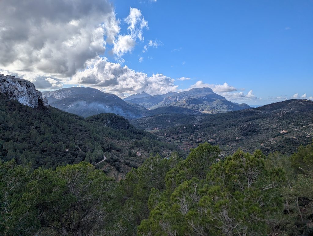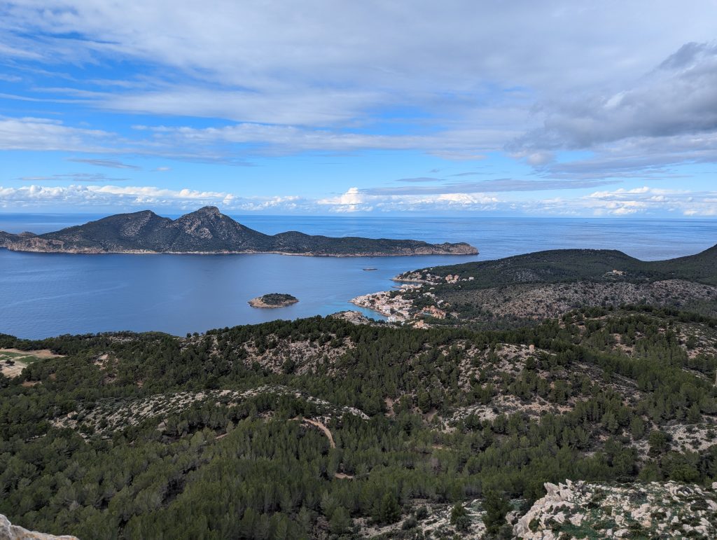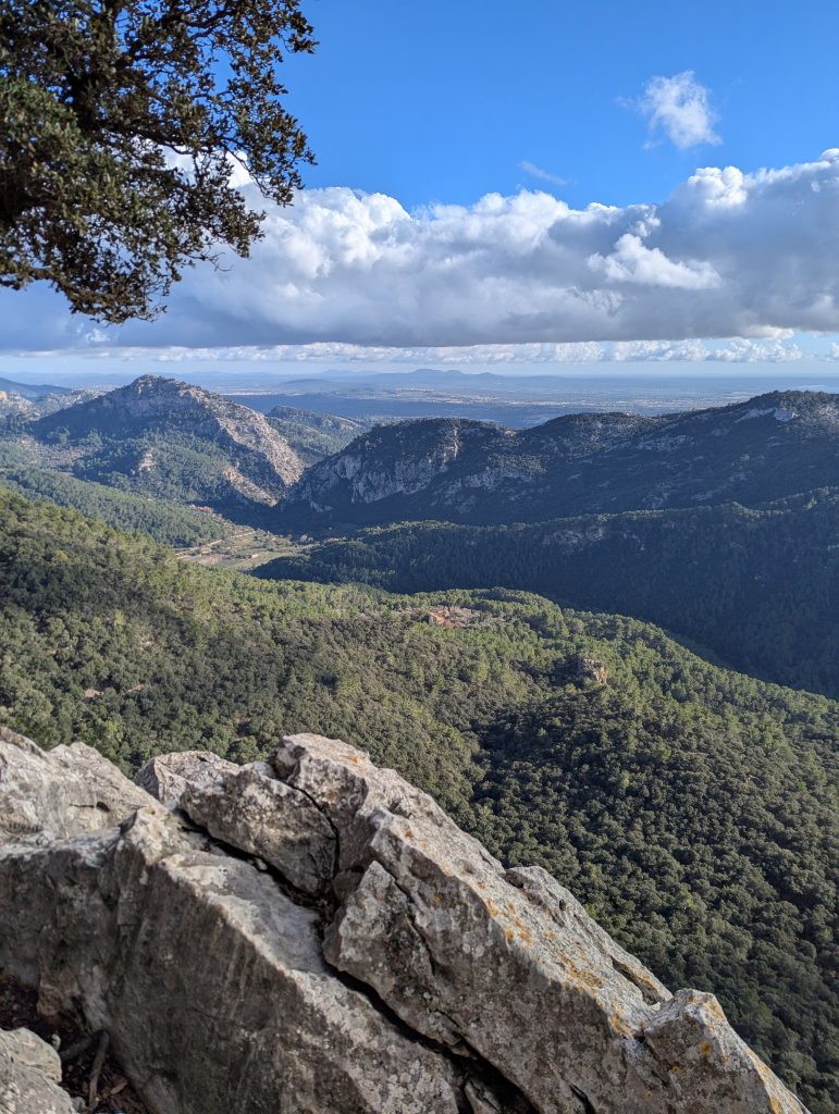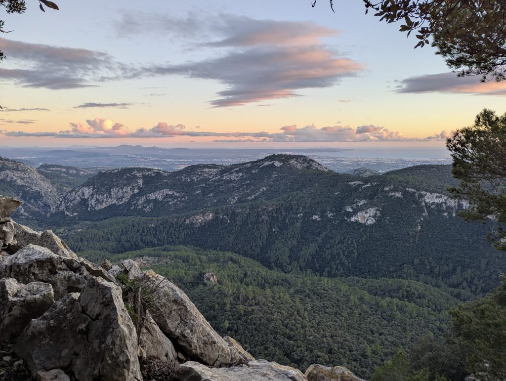 Am Gipfel angelangt, bekomme ich direkt wieder einen wunderbaren Ausblick auf die Umgebung. Von hier kann ich schon die anderen Berge und auch die Stadt Palma erkennen.