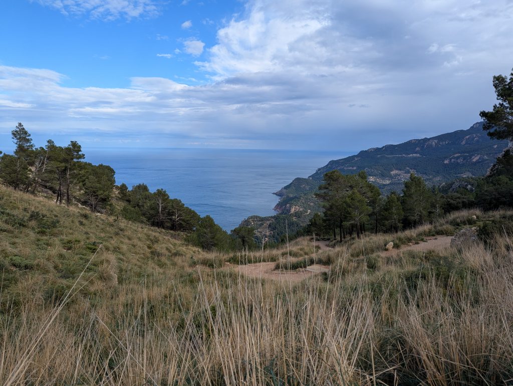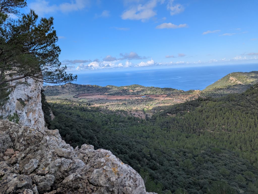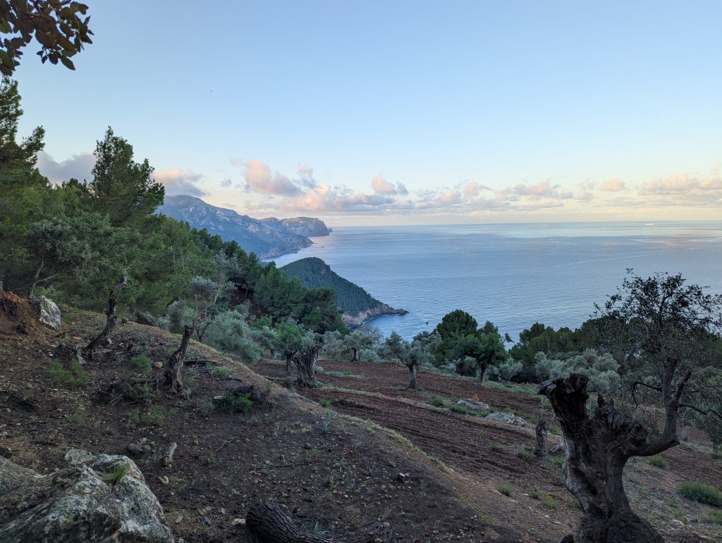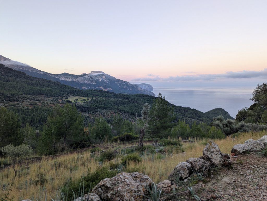 Mit meinen Sachen im Rucksack, geht es direkt wieder durch die schöne Landschaft. Am Morgen habe ich einen leichten Abstieg vor mir. In knapp 2 Stunden geht es bis zum Ort Banyalbufar. Unterwegs lege ich noch eine Frühstückspause ein und genieße den Blick aufs Meer.