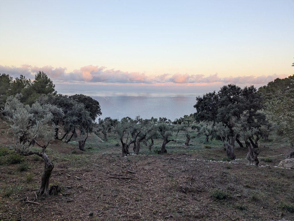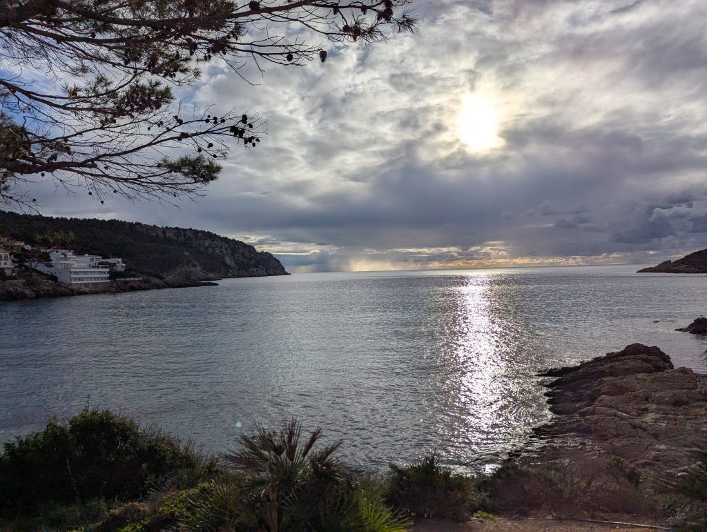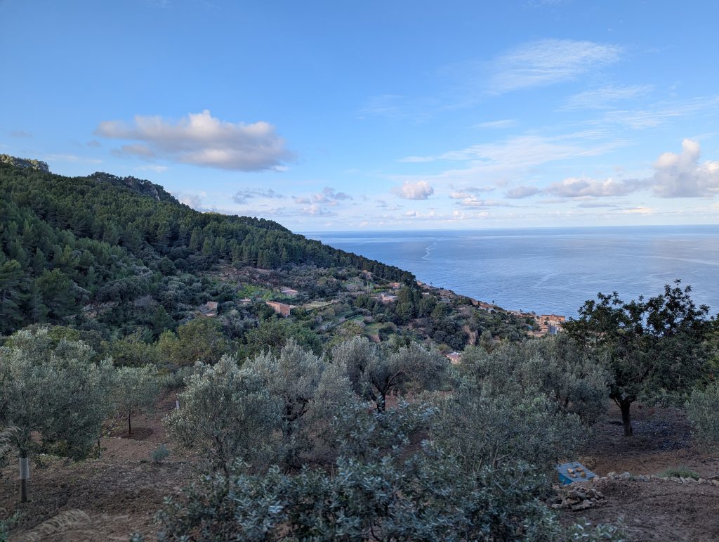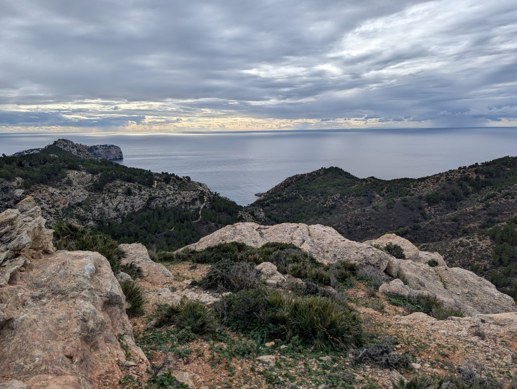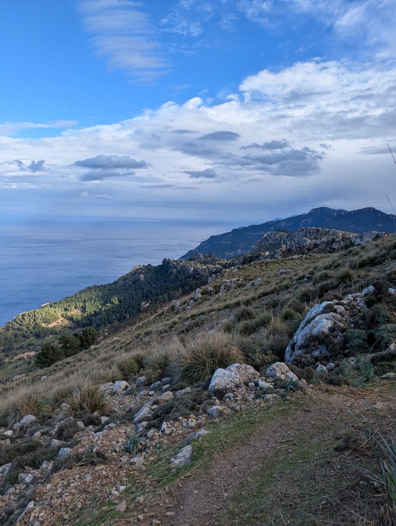Mit meinen Sachen im Rucksack, geht es direkt wieder durch die schöne Landschaft. Am Morgen habe ich einen leichten Abstieg vor mir. In knapp 2 Stunden geht es bis zum Ort Banyalbufar. Unterwegs lege ich noch eine Frühstückspause ein und genieße den Blick aufs Meer.