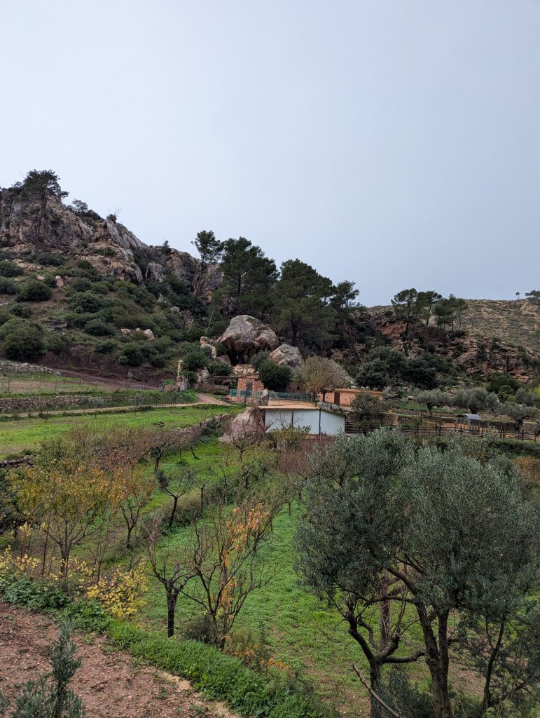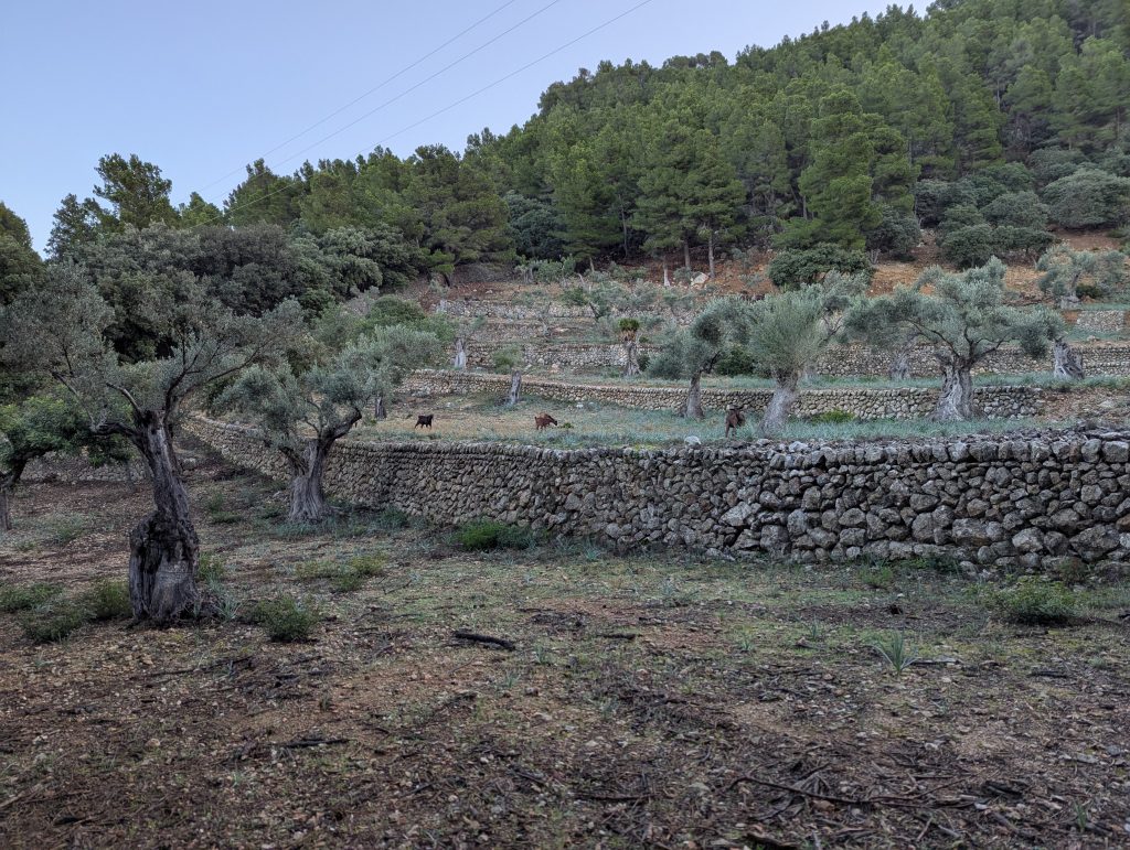 Immer wieder komme ich am Morgen an schönen Terrassen mit Steinmauern vorbei. Darauf sind meistens Olivenbäume platziert und dazwischen immer wieder Tiere zu sehen. Mal werde ich von Ziegen begrüßt und mal sind es Schafe, die schnell vor mir wegrennen.