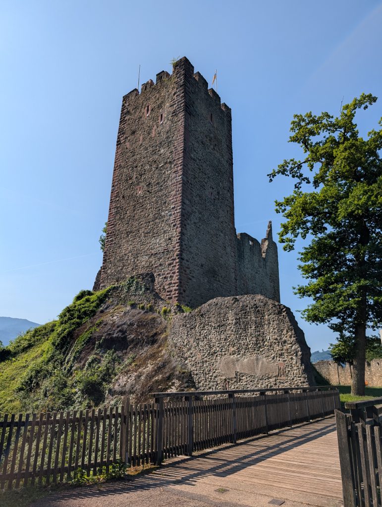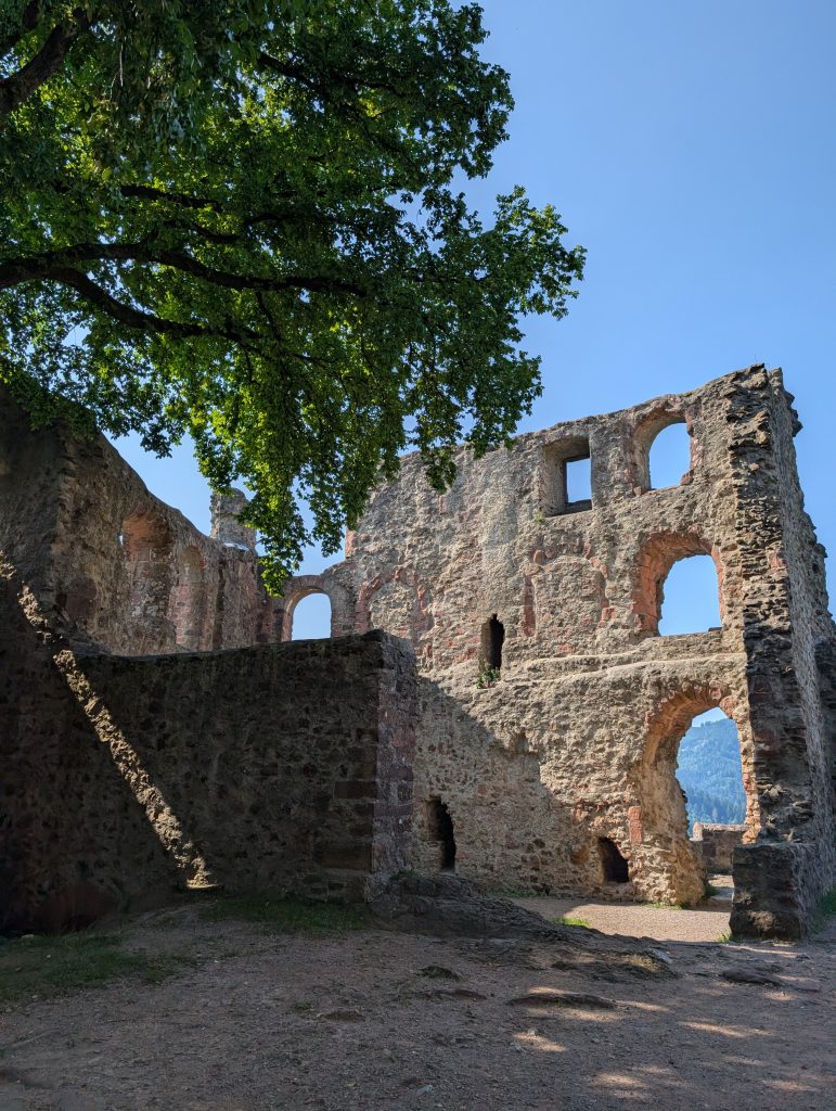 Hoch motiviert mache ich mich auf den Weg, lege aber bereits nach knapp 2 Kilometern eine längere Pause ein, da es eine Burgruine zu besichtigen gibt, was ich mir natürlich nicht entgehen lassen möchte.