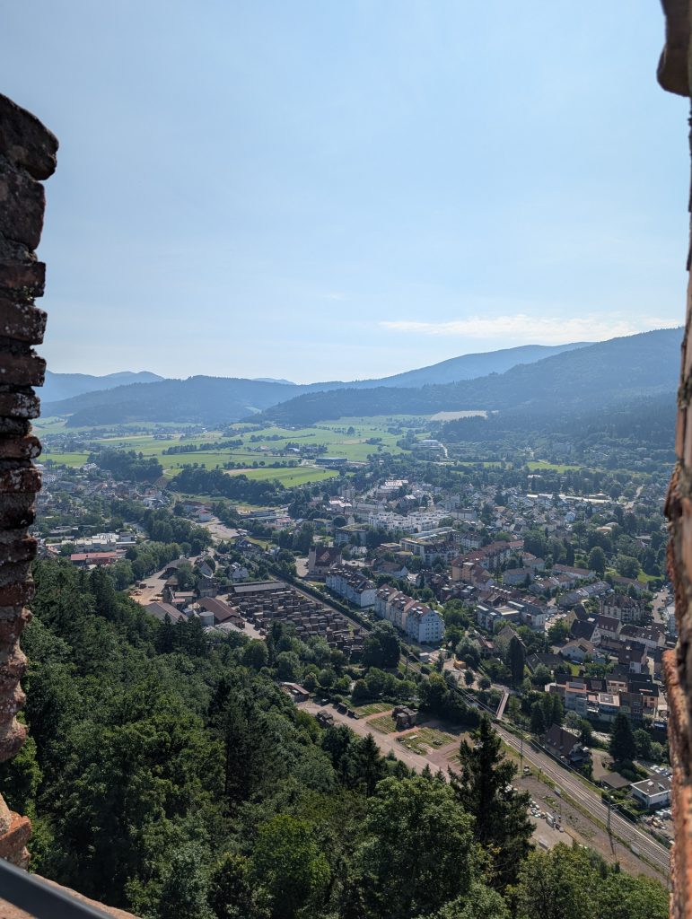 Auch wenn es doch einige Treppenstufen bis nach oben sind, renne ich die Treppe zum Turm hinauf und werde dafür mit einer schönen Aussicht belohnt. Ich kann Abschnitte der Strecke erkennen, welche ich in den nächsten Tagen absolvieren werde.