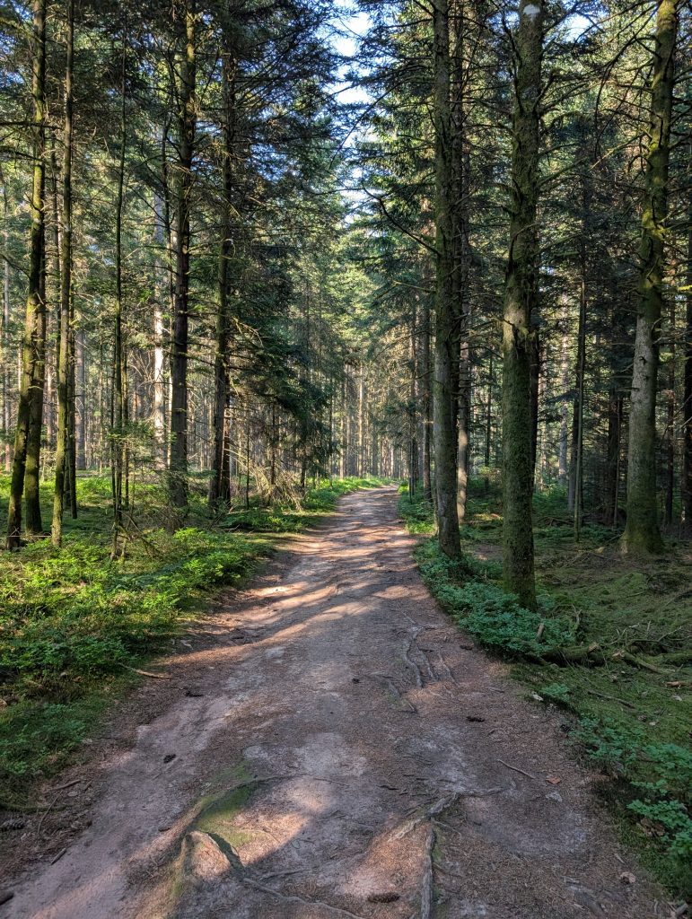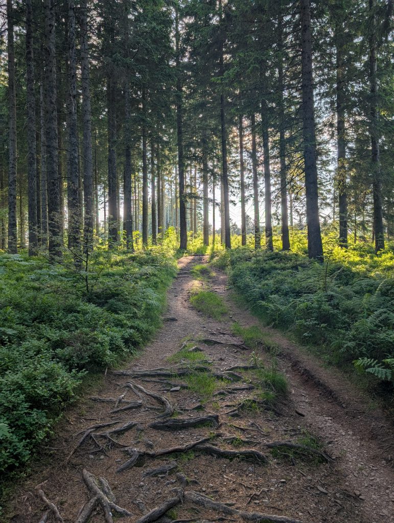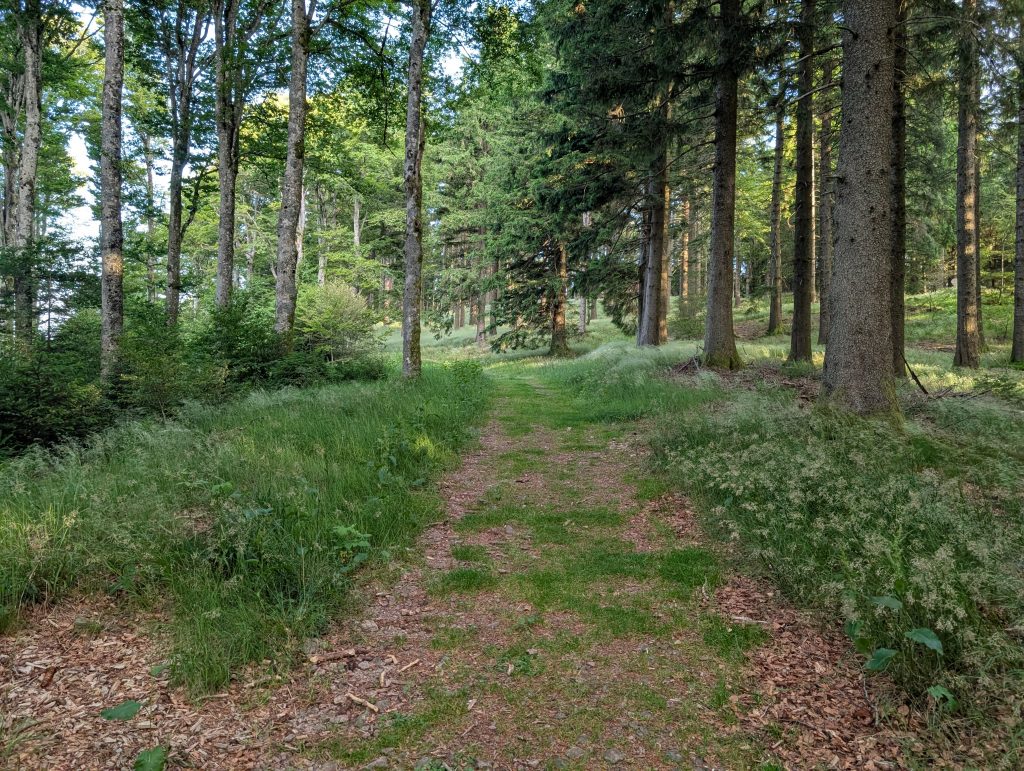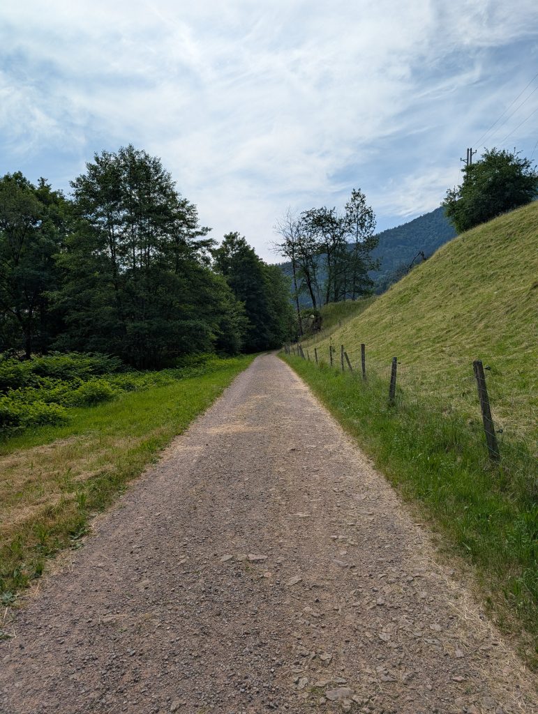 Obwohl ich bis hier her bereits 30 km und etwas mehr als 1400 Höhenmeter hinter mir habe, möchte ich nochmals knapp 8 km und weitere 300 Höhenmeter bis zum Kandel aufsteigen. Ich frage eine Bedienung, ob das heute Abend noch gut möglich sei und sie meinte nur, wenn man fitt ist sollte das kein Problem sein. Dass ich bereits einiges an Strecke hinter mir gelassen habe erwähne ich lieber nicht und somit mache ich mich nach der Stärkung wieder auf den Weg. Die folgenden Kilometer sind angenehm zu laufen und der große Anstieg, welcher mir von einem entgegenkommenden Wanderer noch angekündigt wurde, bleibt zum Glück aus.