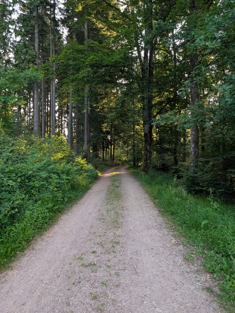 Dann mache ich mich an den kurzen Abstieg nach Waldkirch, welcher mich auf etwas über 8 km durch den Wald hinab ins Tal führt. Schon bald erreiche ich die ersten Ausläufer des Ortes und somit auch das Ende meiner 4-tägigen Wanderung auf dem ZweiTälerSteig.