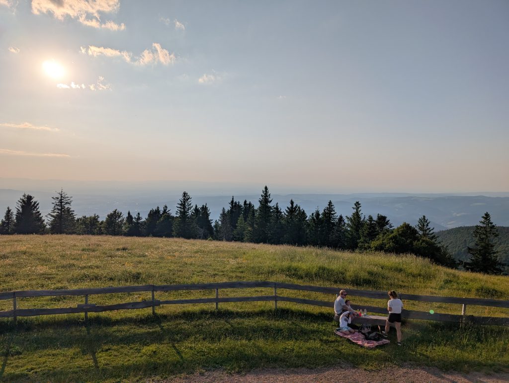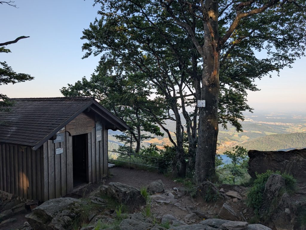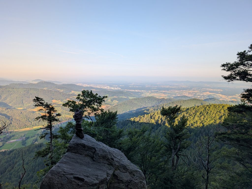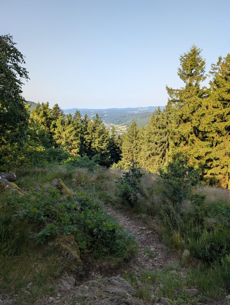 Gegen 20 Uhr erreiche ich dann endlich den Kandel (1241m), von wo aus ich einen super Blick auf die Umgebung habe. Leider ist hier ziemlich viel los, da heute anscheinend Sonnenwendfeier ist, was mich dazu bringt auf der anderen Seite schnell wieder einige Höhenmeter abzusteigen.