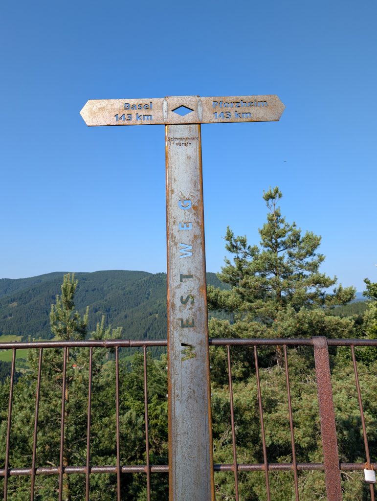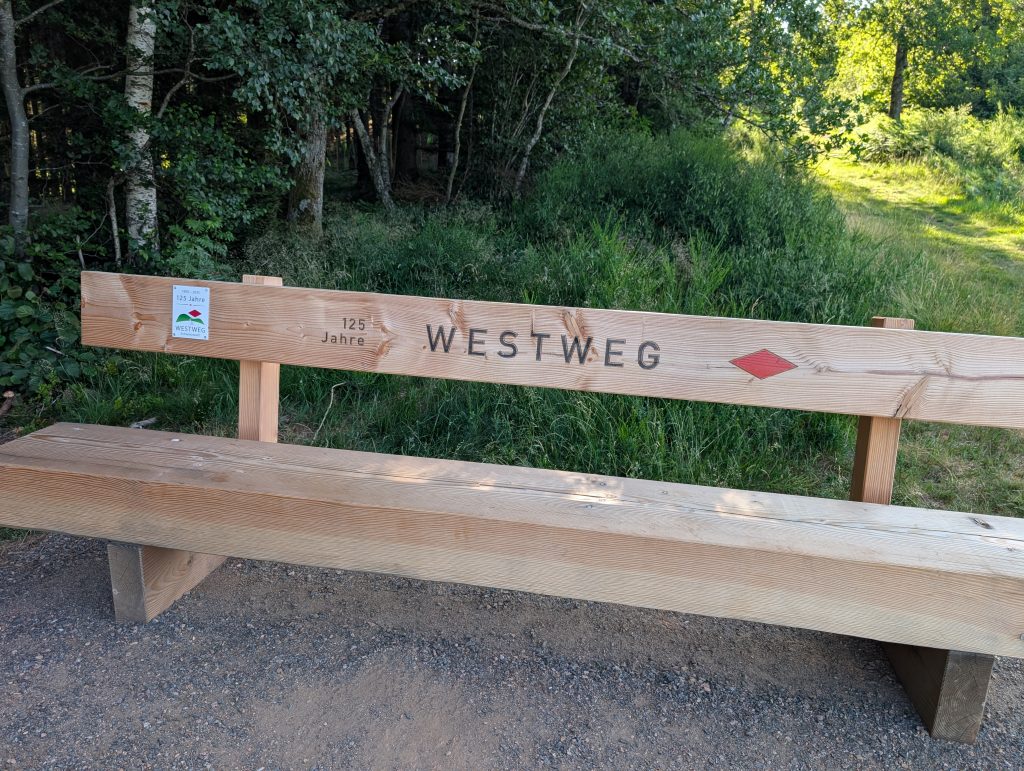 Danach geht es immer weiter nach oben und ich bekomme einige schöne Aussichten zu Gesicht, bevor ich dann auf den Westweg treffe, der für einige Kilometer mit dem ZweiTälerSteig überlappt. Offensichtlich hat der Westweg dieses Jahr sein 150 jähriges.