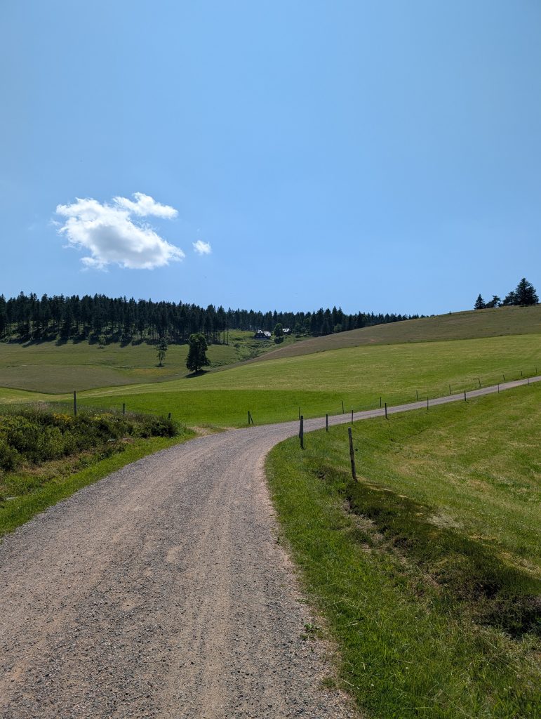 Eigentlich hatte ich erwartete, dass ich langsam müde werden sollte, aber anscheinend bin ich doch besser trainiert als erwartet und somit laufe ich immer weiter auf und ab. Erneut wandere ich durch den Wald und komme an Wiesen vorbei, die mir einen schönen Blick in die Landschaft erlauben.
