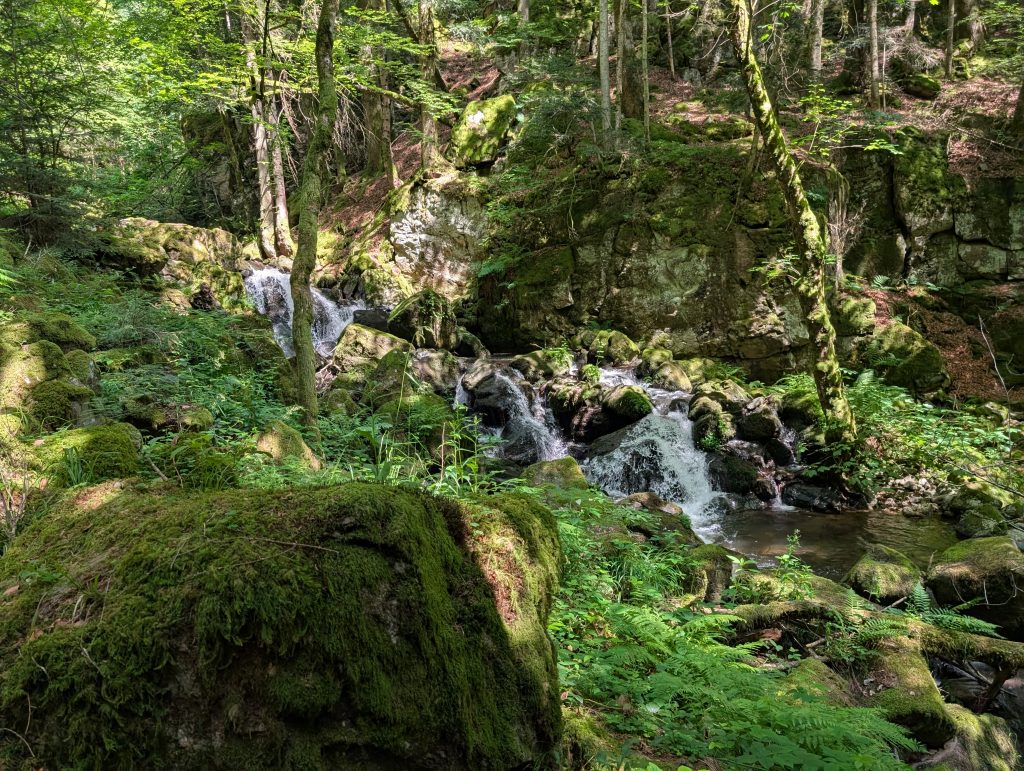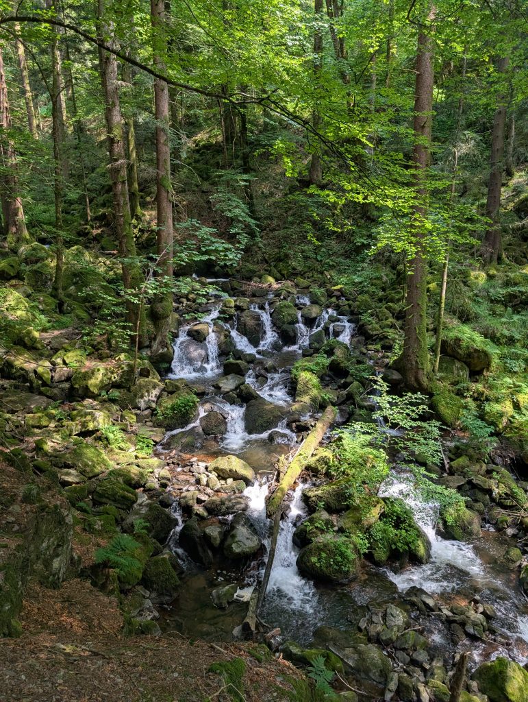 Da ich es heute noch auf den Kandel, den höchsten Berg des Mittelschwarzwalds schaffen möchte, muss ich erneut einige Höhenmeter zurücklegen. Dabei komme ich nochmals an einem sehr schönen Wasserfall vorbei, bevor der Weg in seiner Steigung deutlich anzieht und mich erneut ziemlich fordert.