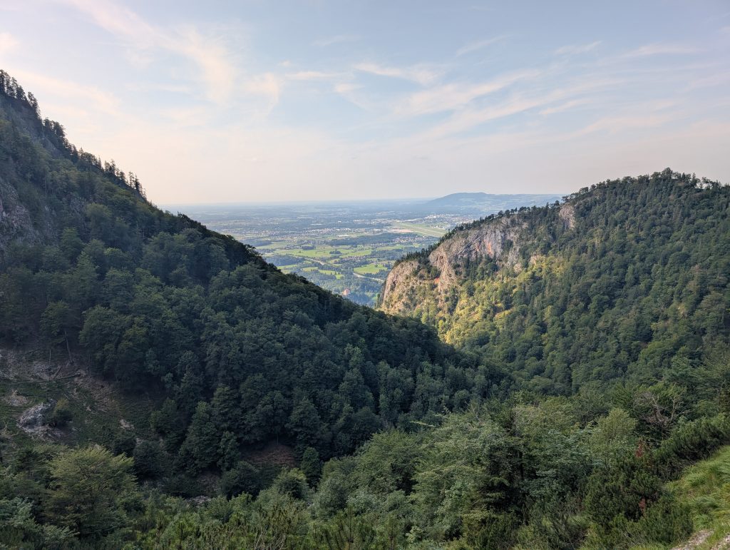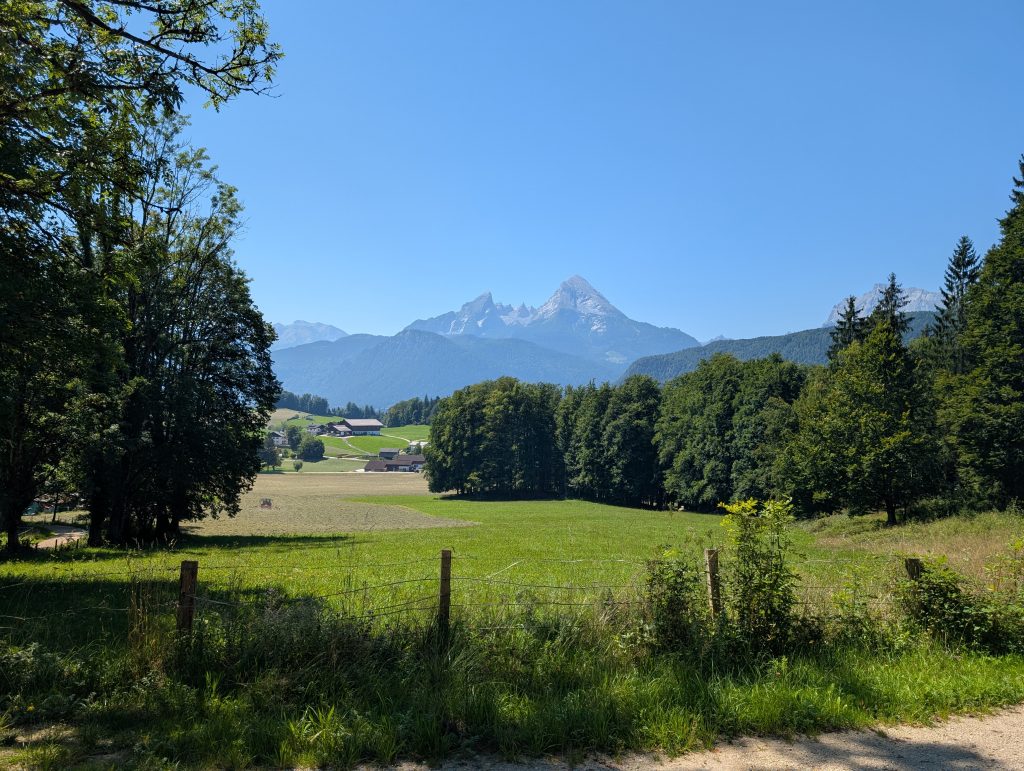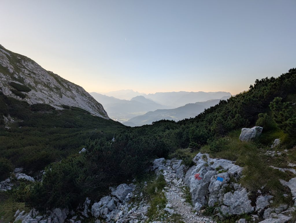 Danach mache ich mich wieder auf den Weg, um den langen, aber einfachen Abstieg bis nach Berchtesgaden zu bewältigen. Der Weg ist im großen und ganzen ganz angenehm zu laufen. Anfangs geht es über schmale Wege am Hang entlang und ich bekomme immer wieder schöne Aussichten zu Blick.