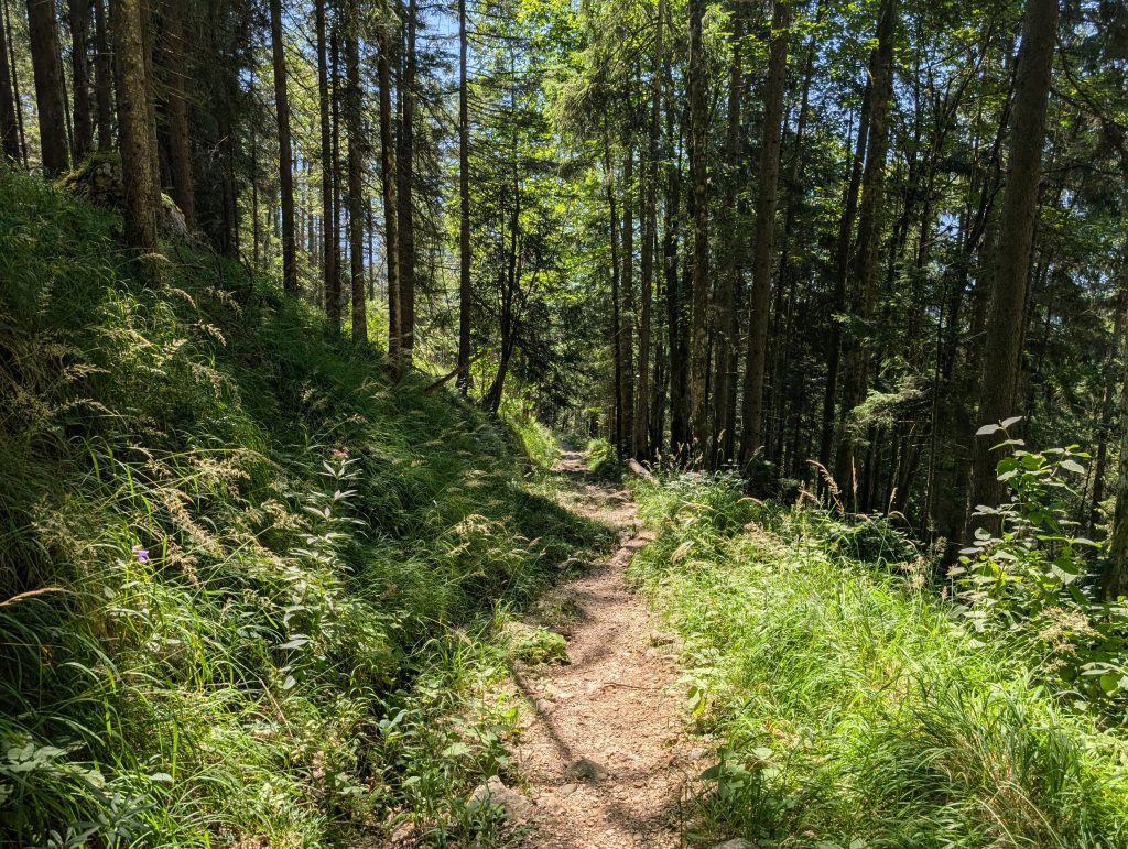 Später wechselte der Weg zunehmend in den Wald und somit bekomme ich endlich etwas Schatten, der bei der stechend heißen Sonne eine schöne Abwechslung ist.