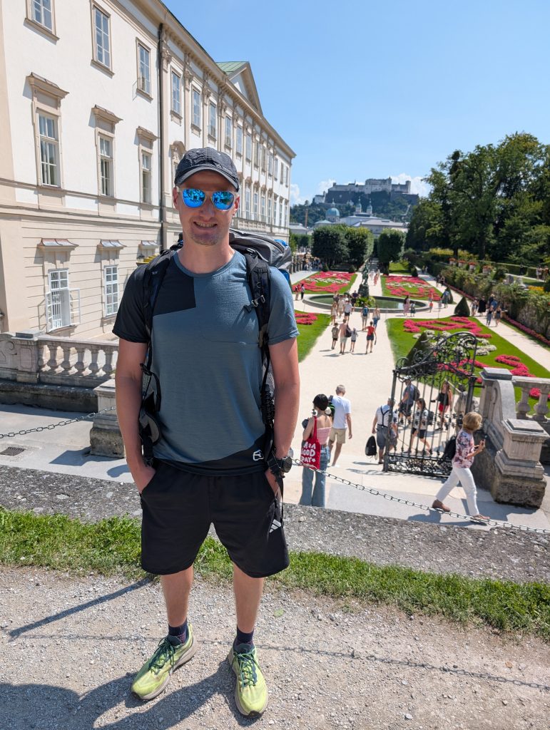 Der Wecker klingelt pünktlich um 5 Uhr. Da ich gestern noch die letzten Vorbereitungen treffen musste, war es eine kurze Nacht. Nach einer letzten Dusche mache ich mich auch schon auf den Weg. Mit dem Zug geht es über Stuttgart und München weiter bis nach Übersee. Von dort aus muss ich in den Schienenersatzverkehr und dann nochmals die letzten Meter mit der Bahn bis nach Salzburg. Unterwegs hole ich Schlaf nach und studiere das erste Mal den Reiseführer, der gestern noch rechtzeitig eingetroffen ist.
