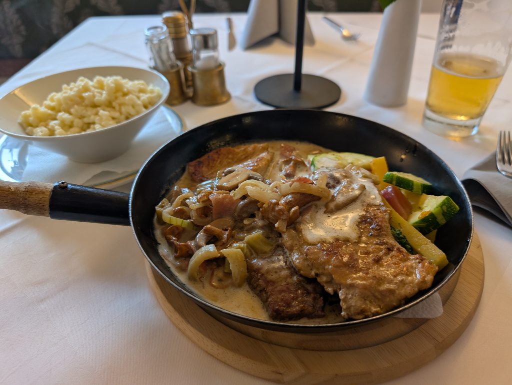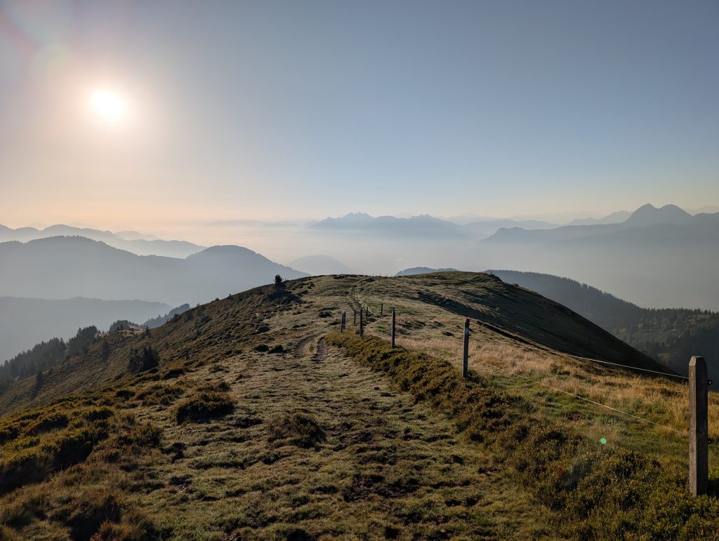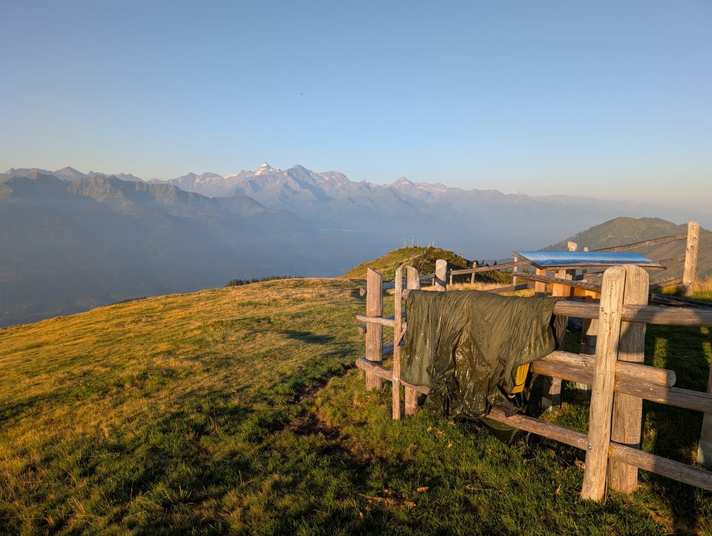Heute sitze ich bei einer Gruppe beim Essen, die hier den Kreuzeck-Höhenwdeg, eine Mehrtagestour durch die Gebiergsgruppe, läuft. Mit einem Unterhalter ich mich länger übers Bikepackung, da er schon einige interessante Touren gemacht hat.