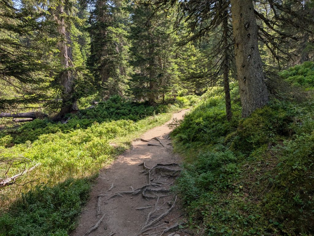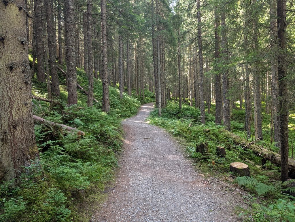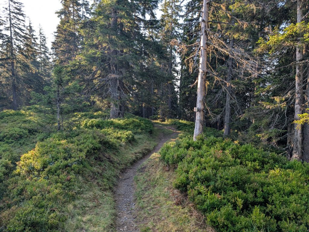 Der Weg zieht etwas an, aber ist insgesamt weiterhin sehr einfach zu laufen und im kühlen Wald ist es sehr angenehm. An einem Wanderparkplatz, welcher ziemlich voll aussieht, esse ich zu Mittag und starte danach in den zweiten Teil des Anstiegs.