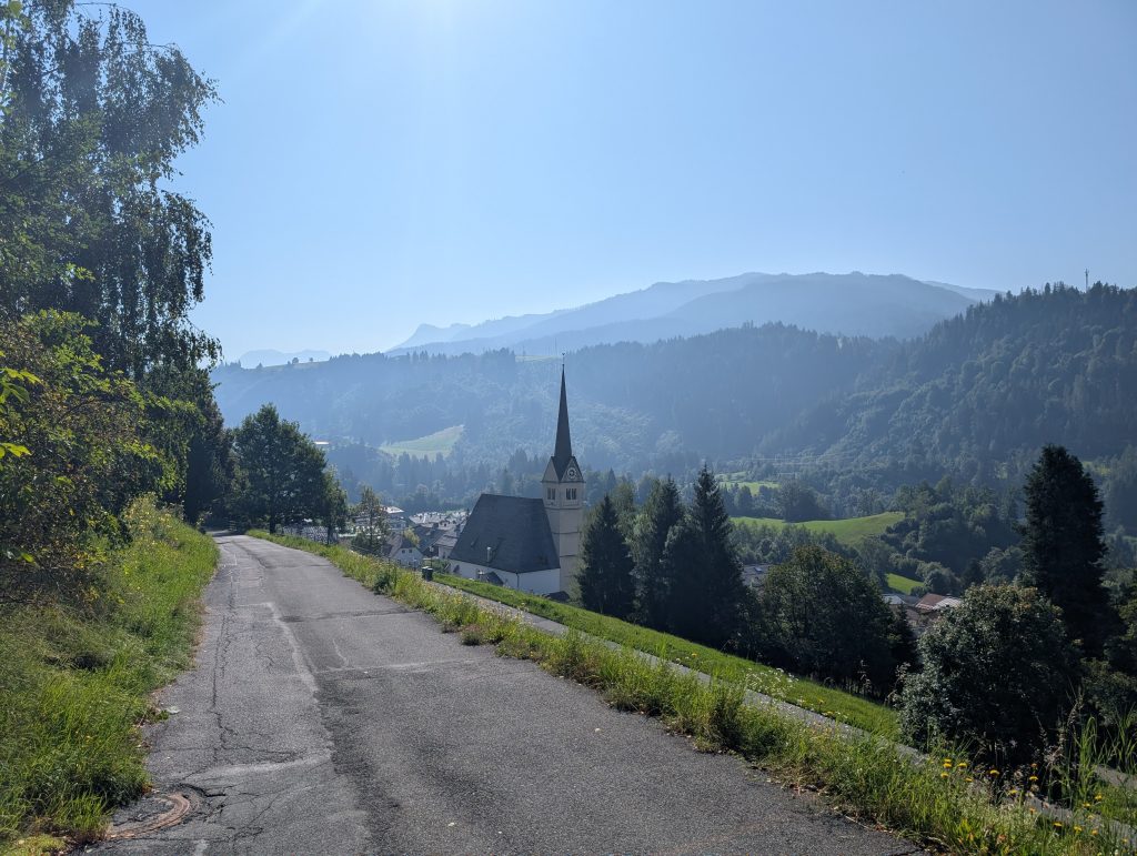 Im Ort angekommen, trinke ich nochmals einen Kaffee in einer Backstube und schaue mir die Kirche im Ort an. Danach geht es direkt aus dem Ort hinaus und weiter bis zur Kitzlochklamm. Hier gibt es eine riesige Schlange am Einlass und auch in der Klamm muss ich ständig Leuten in einem sehr langsamen Tempo hinterherlaufen.