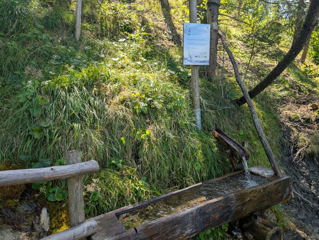 Der Weg geht direkt weiter am Wasser entlang und immerhin sind hier kaum Leute unterwegs. Der Weg nach Rauris ist eigentlich ziemlich einfach zu gehen und hat auch kaum Anstiege dabei. Trotzdem ist es bei 32 Grad anstrengend zu wandern und umso mehr freue ich mich, als ich auf einmal einem Brunnen mit frischem Quellwasser vorbeikomme. Das Wasser schmeckt nicht nur hervorragend, sondern ist gefühlt auch 6-8 Grad kalt und bietet somit eine optimale Erfrischung bei den hohen Temperaturen.