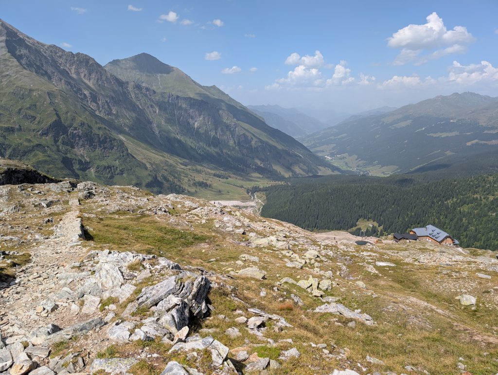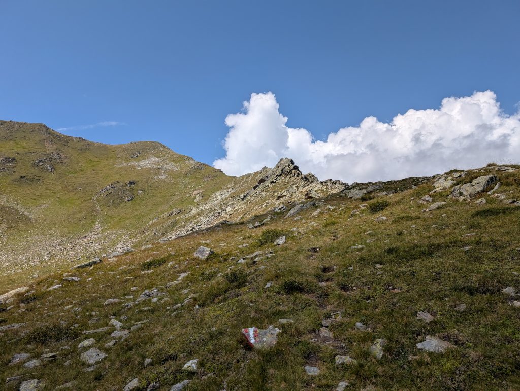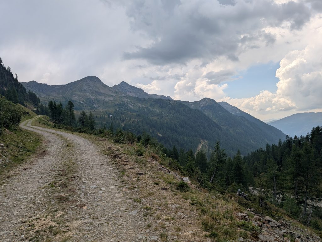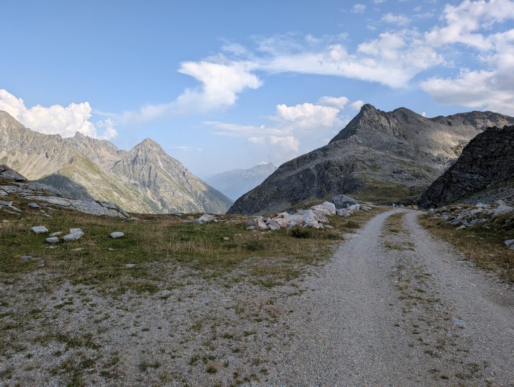 Es geht weitere 600 Höhenmeter hinauf zur Fraganter Scharte, welche mit 2754 m den höchsten offiziellen Punkt meiner kompletten Alpenüberquerung bildet. Unterwegs sehe ich immer wieder alte Gebäude und Stollen, die früher für den Abbau von Gold und Silbererz genutzt worden sind. Teilweises wurde hier bereits vor 500 Jahren Material abgebaut, was vor dem Einsatz von Dynamit eine sehr anstrengende Arbeit gewesen sein muss. Über eine alte Bremsbahn, mit derren Hilfe das Material nach unten geschafft wurde, geht es für mich die entgegengesetzte Richtung den Berg hinauf.