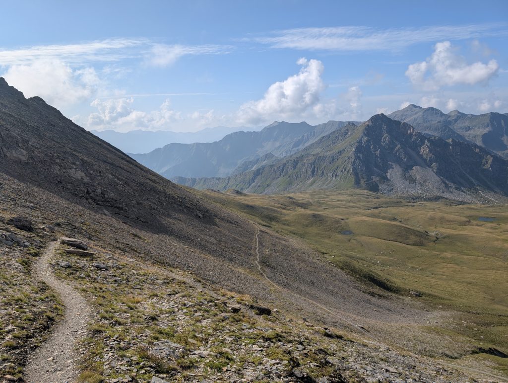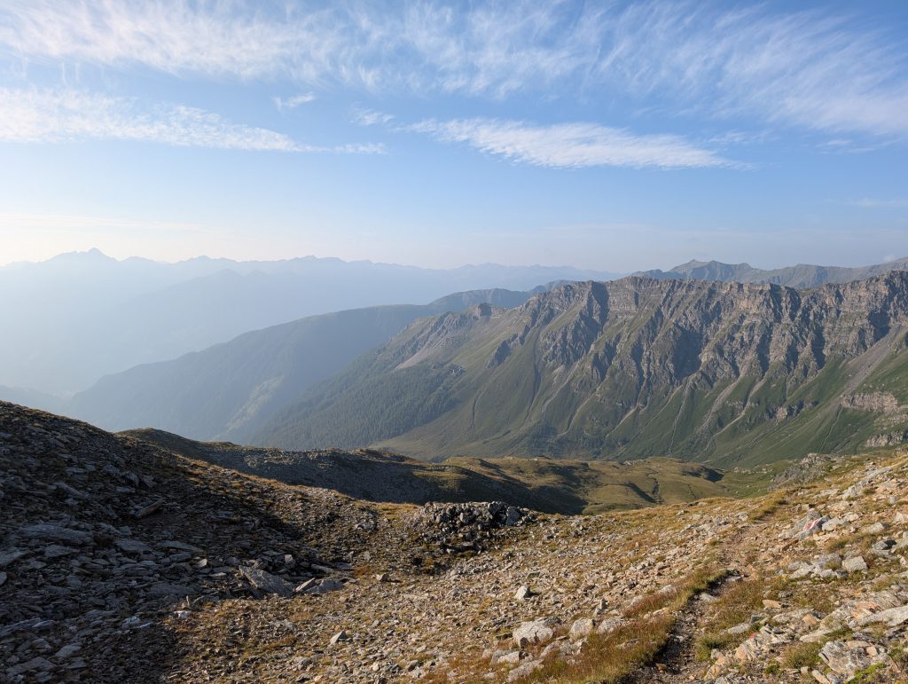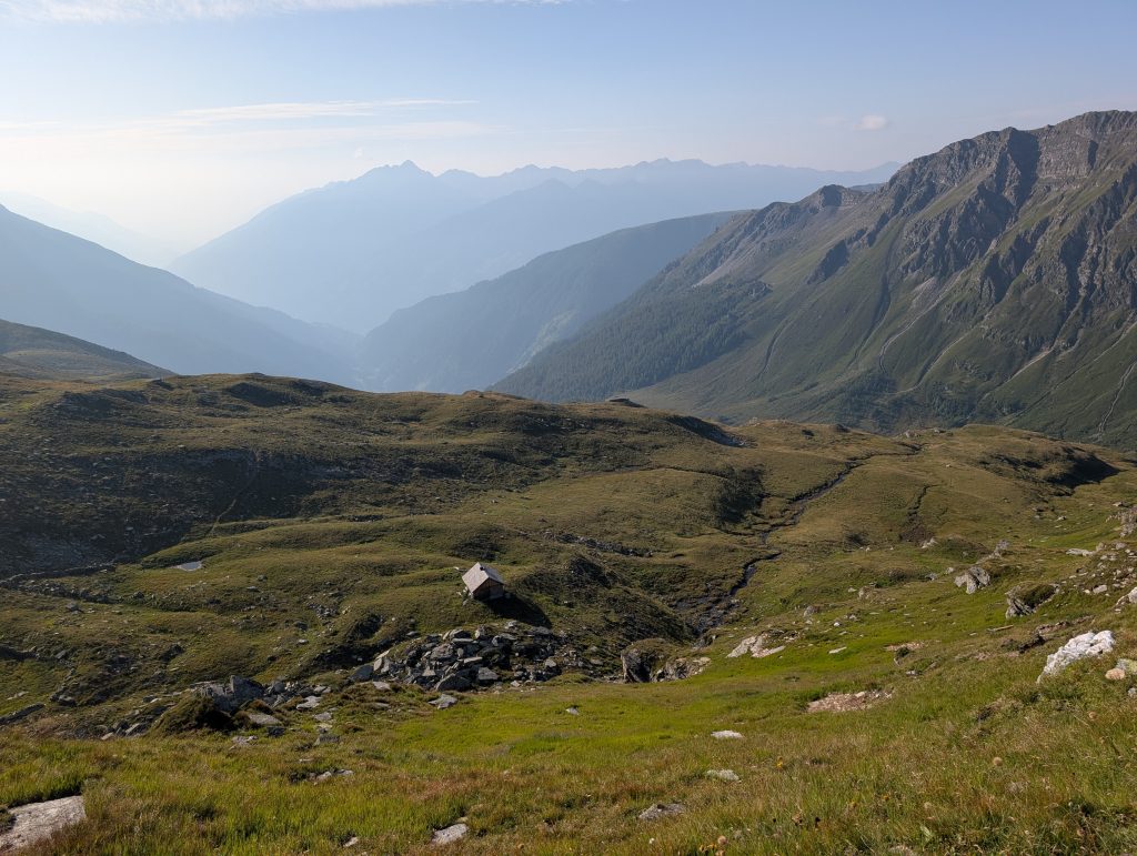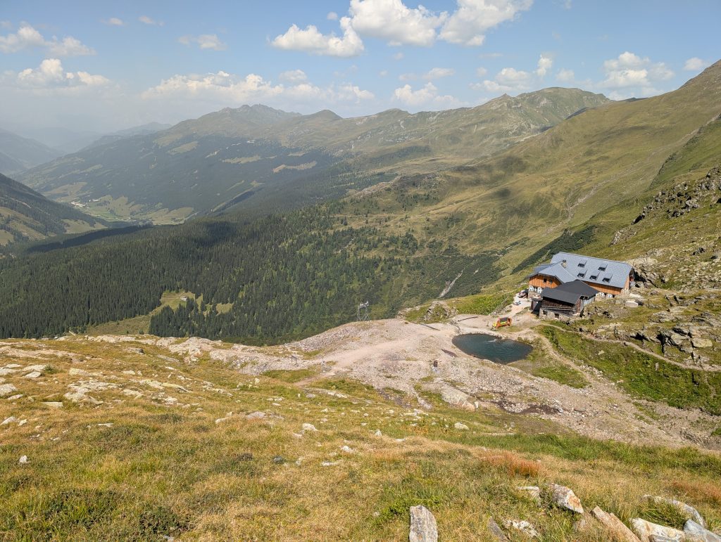 Es geht weitere 600 Höhenmeter hinauf zur Fraganter Scharte, welche mit 2754 m den höchsten offiziellen Punkt meiner kompletten Alpenüberquerung bildet. Unterwegs sehe ich immer wieder alte Gebäude und Stollen, die früher für den Abbau von Gold und Silbererz genutzt worden sind. Teilweises wurde hier bereits vor 500 Jahren Material abgebaut, was vor dem Einsatz von Dynamit eine sehr anstrengende Arbeit gewesen sein muss. Über eine alte Bremsbahn, mit derren Hilfe das Material nach unten geschafft wurde, geht es für mich die entgegengesetzte Richtung den Berg hinauf.