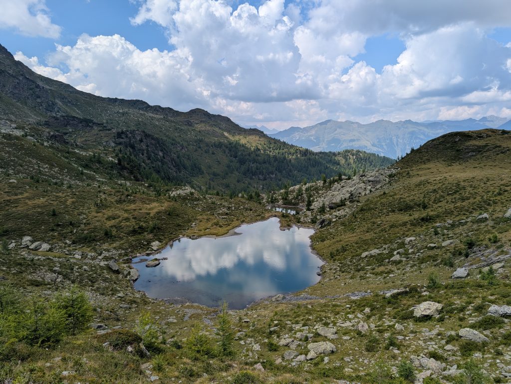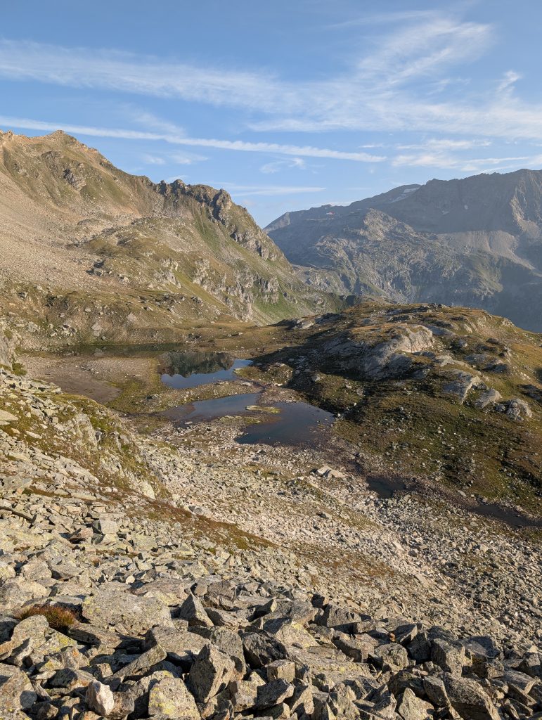 Ich komme an einem See vorbei und überlege mir zuerst ob ich hier übernachten kann, entscheide mich dann aber doch dazu nochmals knapp 100 Höhenmeter zu zwei kleineren Seen aufzusteigen.