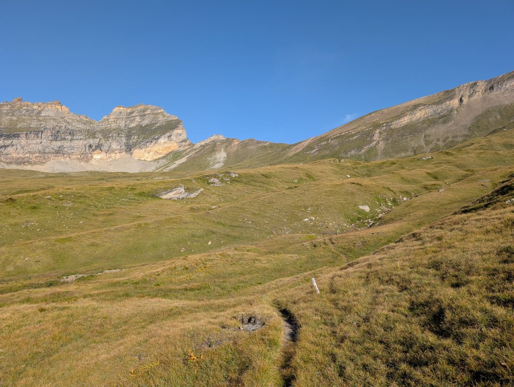 Von hier an geht es dann relativ entspannt am Hang entlang bis zur Hugo-Gerbers-Hütte.