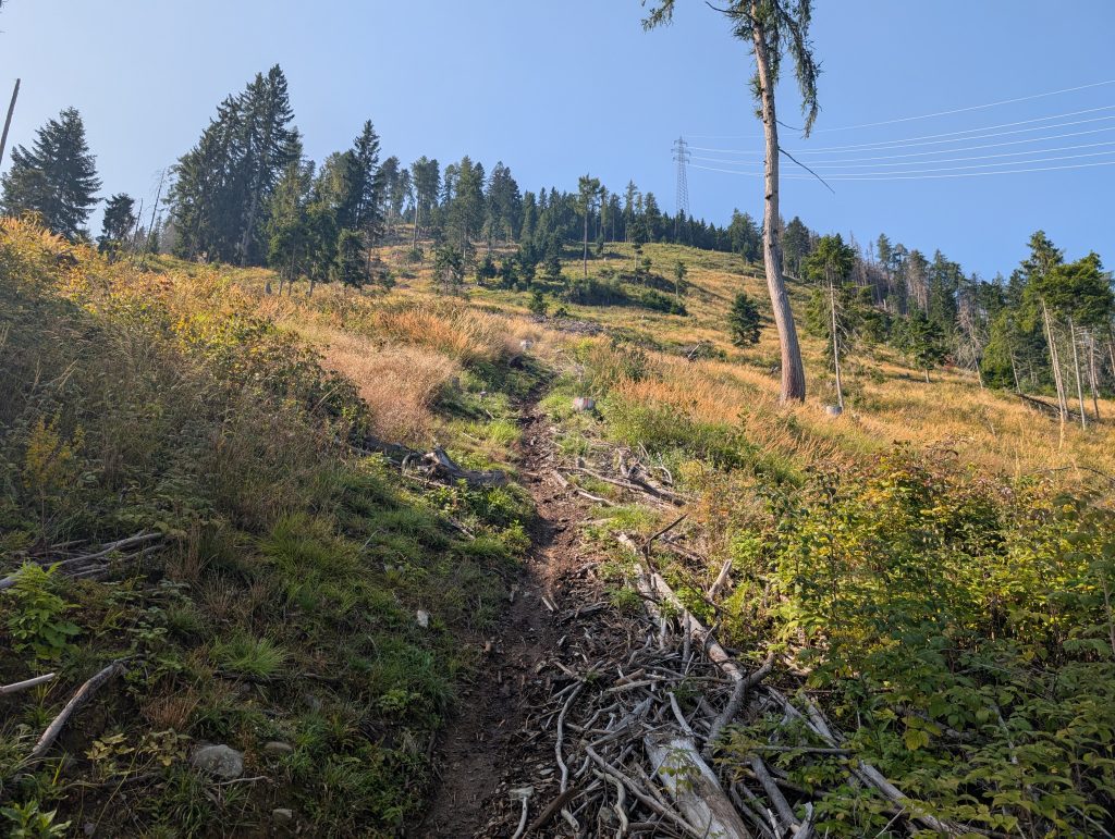 Danach geht es für mich direkt nach oben und danach für kurze Zeit durch eine Graslandschaft, bevor ich dann zum eigentlichen Anstieg des Tages komme.