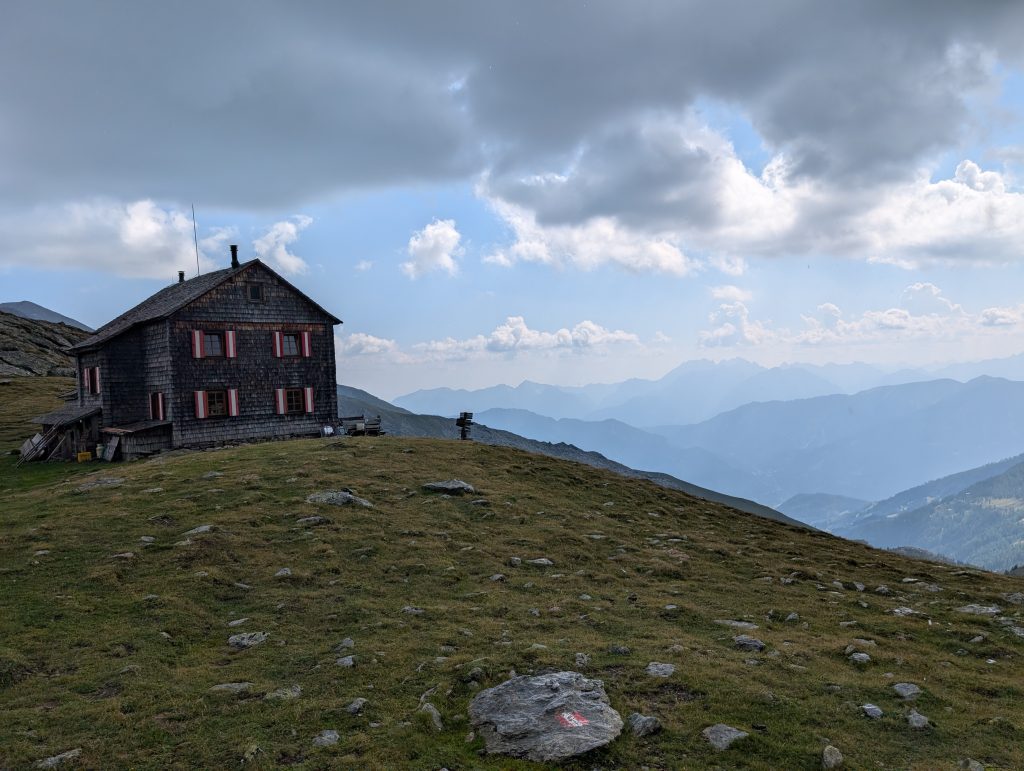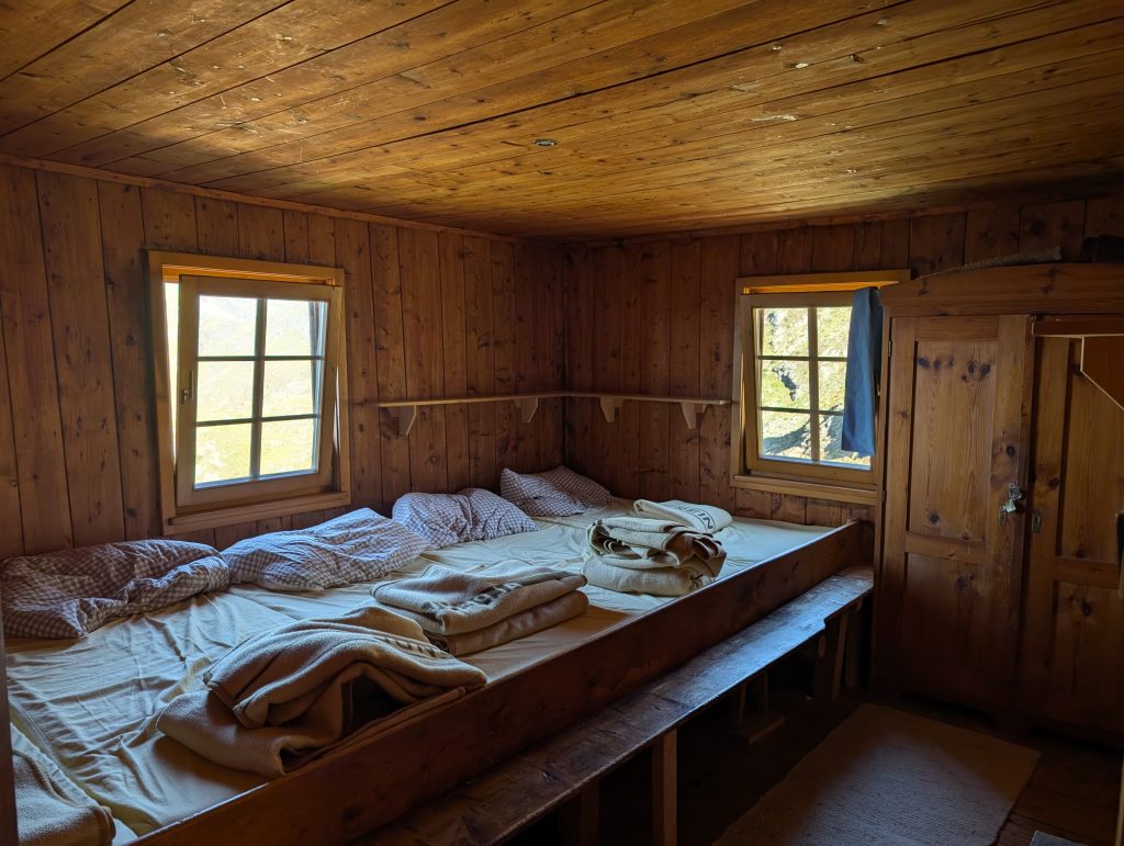 Ich bekomme noch einen Platz im Lager der äußerst urigen Hütte. Es gibt weder fließend Wasser noch eine richtige Essenauswahl. Stattdessen kann man am Abend zwischen zwei Essen aus jeweils einem großen Topf wählen, welches nicht von Mitgliedern des Alpenvereins, sondern von Freiwilligen, die hier jeweils eine Woche auf der Hütte verbringen, gekocht wurde. Trotzdem oder vielleicht auch genau wegen dieser Einfachheit, gefällt mir die Hütte sehr gut.