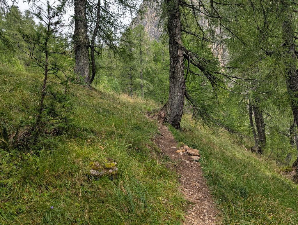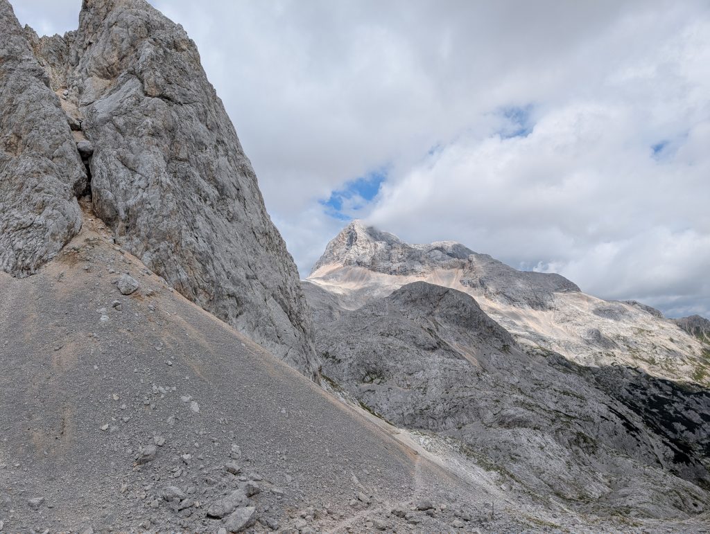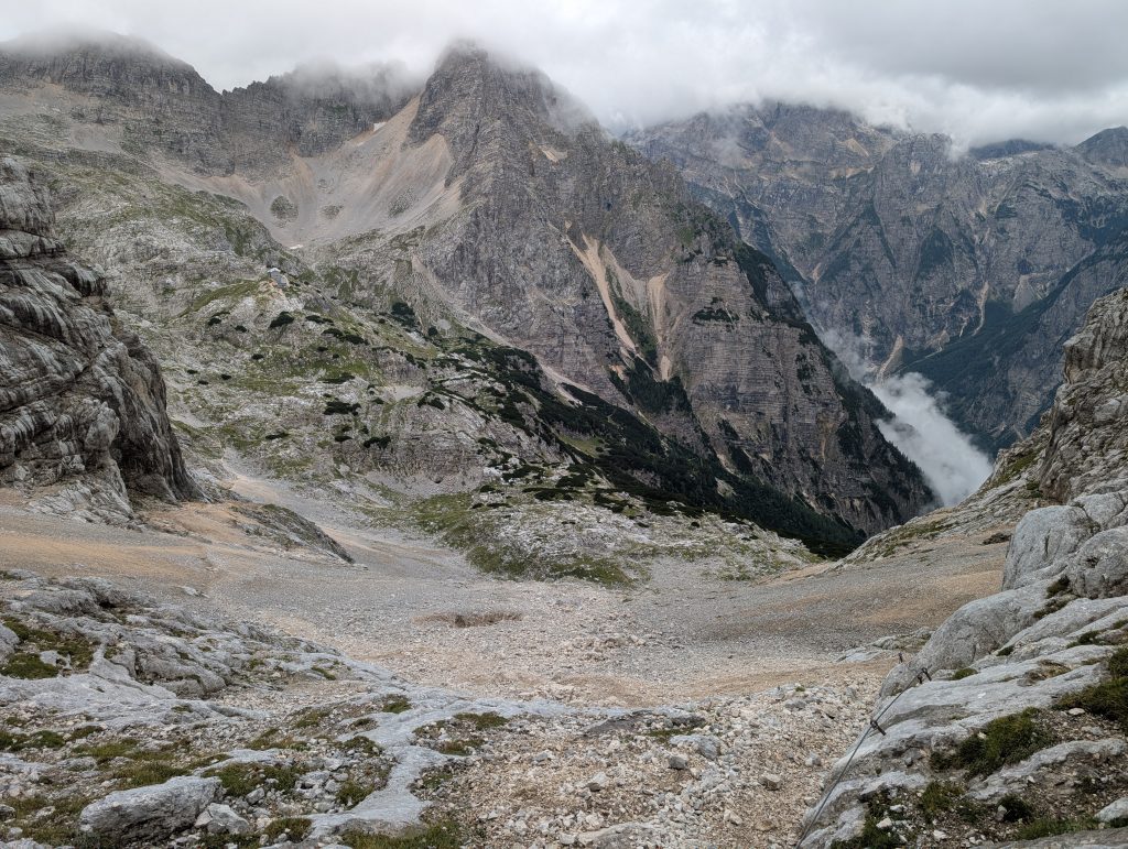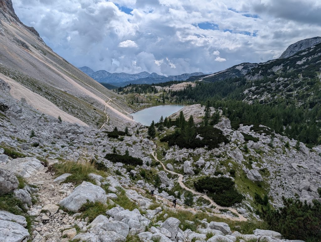 Nach einiger Zeit komme ich an der Koca na Dolicu an. Diese Berghütte wird gerne von Leuten genutzt, die auf den Triglav wollen. Da ich keine Ausrüstung dabei habe und mir die Hüttenwirtin heute morgen bereits von einem Aufstieg ohne Helm aufgrund einiger Vorkommnisse in letzter Zeit stark abgeraten hat, esse ich in der Hütte eine Suppe und mache mich wehmütig wieder auf den Weg. Obwohl ich so nah am Triglav vorbeilaufe, lasse ich dieses Abenteuer vorerst aus und verschiebe es auf die Zukunft. Immerhin habe ich dann einen guten Grund mal wieder hierher zurück zu kommen.