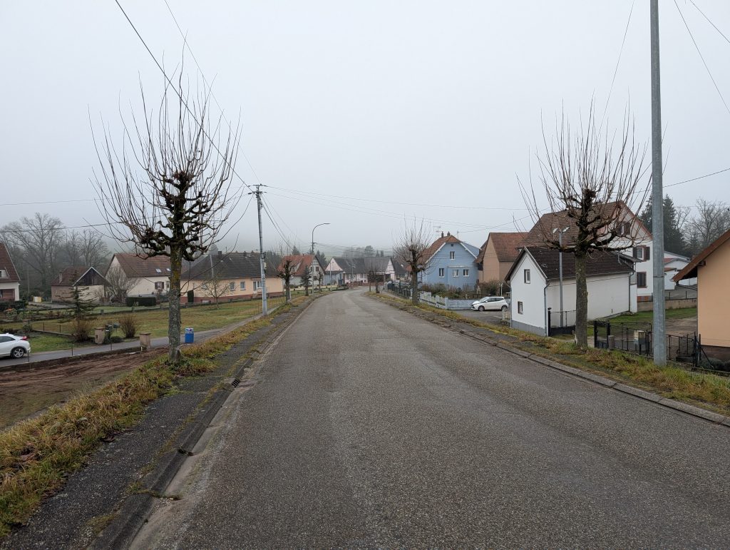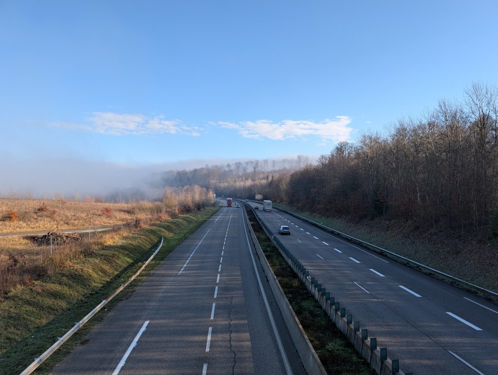 Im Grunde passiert auch nicht mehr viel und bald überquere ich eine Autobahn was für mich bedeutet, dass ich schon bald an meinem Ziel in Saverne sein werde. Komischerweise ist genau an dieser Stelle ein blauer Himmel über mir, direkt danach aber wieder dichter Nebel.