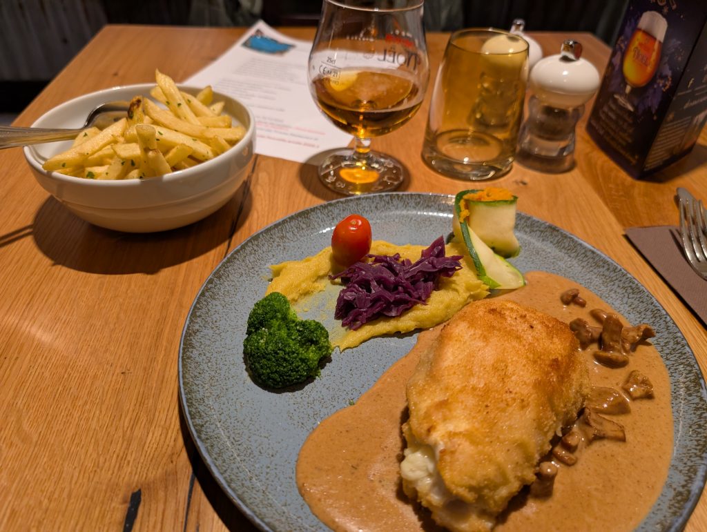 Nach 4 Tagen in der Natur bei Nässe und Kälte, gönne ich mir hier heute eine Unterkunft und biege beim ersten Hotel direkt ab. Wie ich erfahre, gibt es am Sonntag anscheinend Rabatt für mich als Wanderer und mein Zimmer wird auch aufgewertet. Dazu hat das Hotel auch noch eine Sauna, wo von ich besonders angetan bin und somit buche ich mir direkt ein Zimmer. Nach einer ersten Dusche gehe ich direkt eine Runde Saunieren, was nach den letzten Tagen besonders gut tut. Danach schreibe ich etwas an meinem Blog und gehe in einem Restaurant im Ort noch Abendessen.