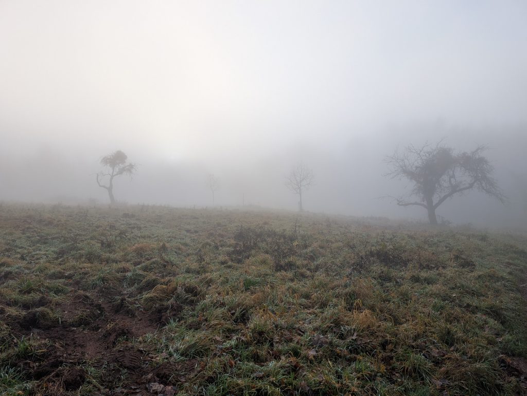 Leider ist entgegen der Wettervorhersage auch heute nur Nebel zu sehen und dazu ist es erneut richtig kalt. Mit Handschuhen und Mütze spaziere ich also los und lasse den kleinen Ort bald hinter mir.