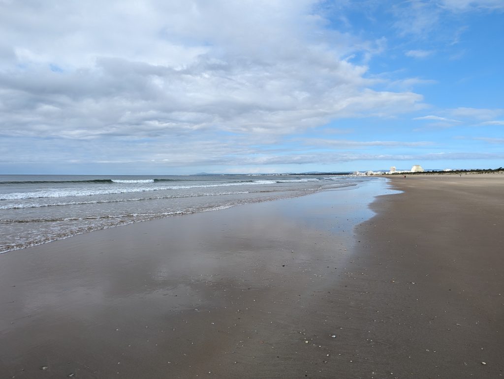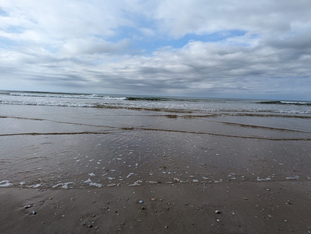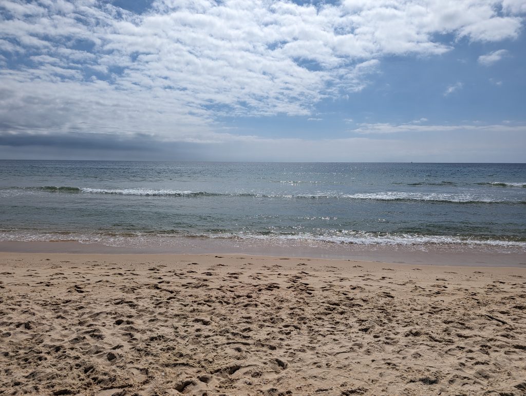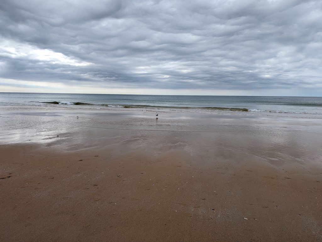 When I arrived at the beach, I immediately got a beautiful view of the sea and the fairly empty sandy beach.