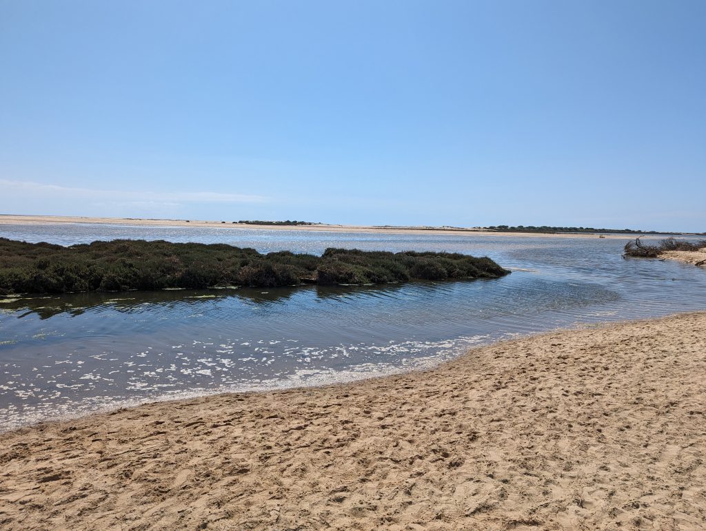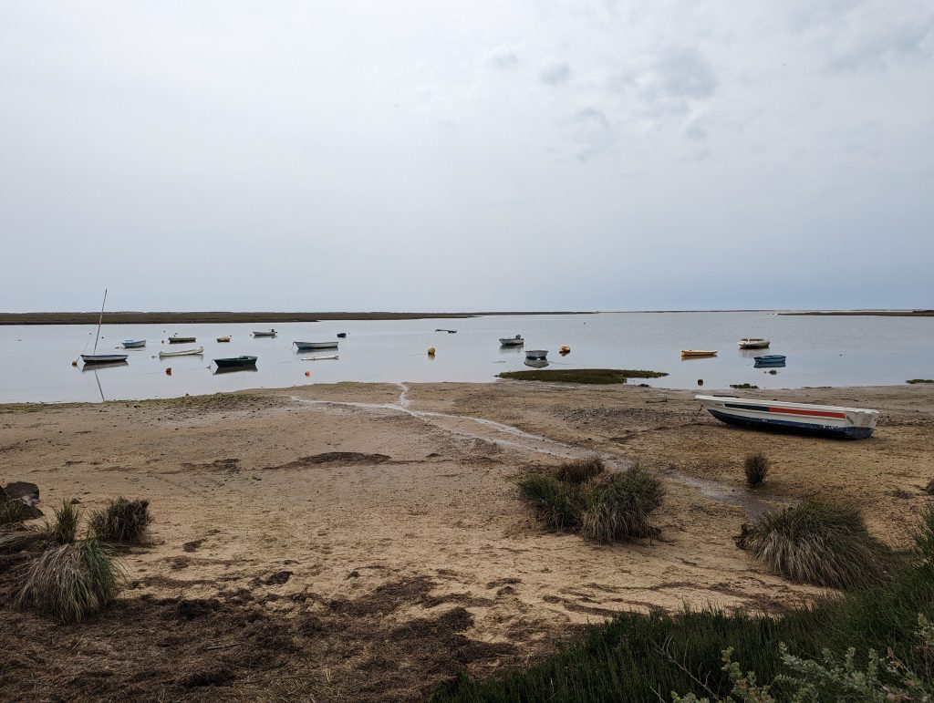 After my short break, I soon left the sand again and came to Cabanas in Tavira. Here I walked along the beautiful harbor and then left the city straight away.
