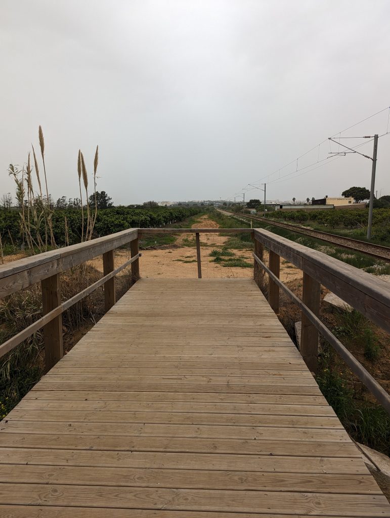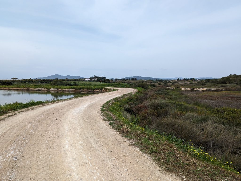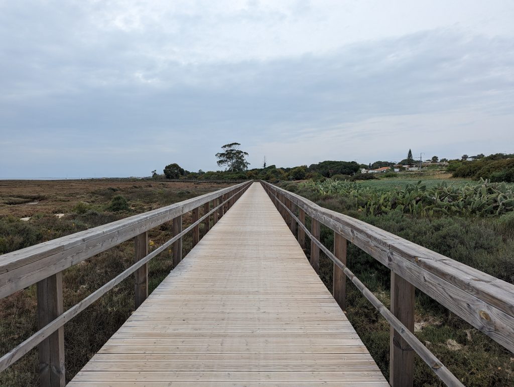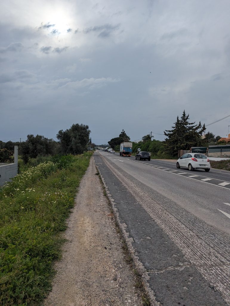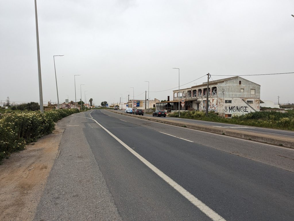 Shortly before Olhao I actually wanted to cross a railway bridge over a river. But since a construction worker told me a few hundred meters ahead that there was definitely no progress here, I unfortunately had to take a less pleasant detour along a busy street. Hiking here was no fun at all and the only satisfaction I got here was that I was walking faster than the people who had to drive their cars in slow traffic.