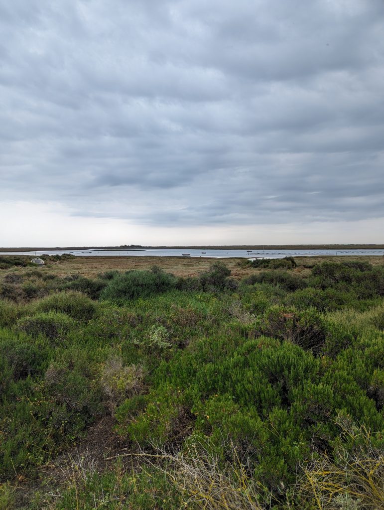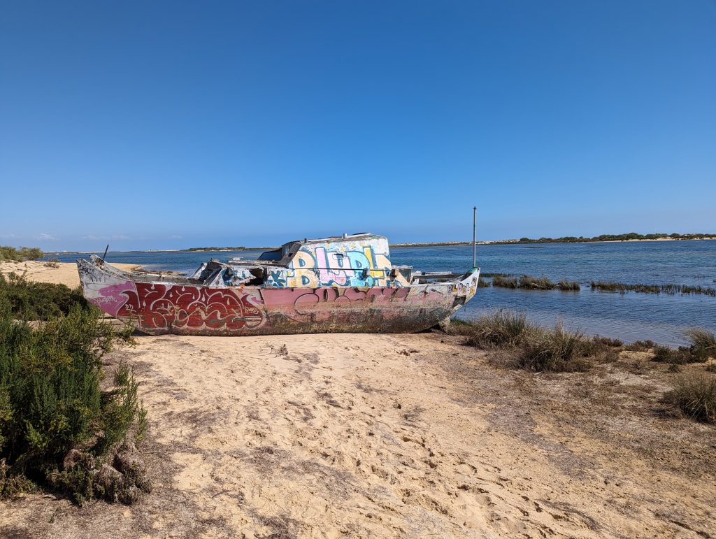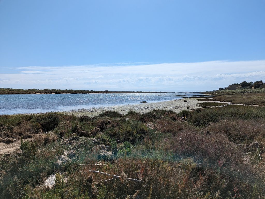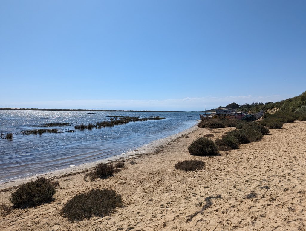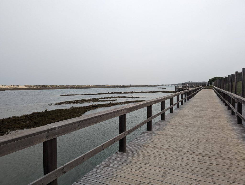 Shortly before Olhao I actually wanted to cross a railway bridge over a river. But since a construction worker told me a few hundred meters ahead that there was definitely no progress here, I unfortunately had to take a less pleasant detour along a busy street. Hiking here was no fun at all and the only satisfaction I got here was that I was walking faster than the people who had to drive their cars in slow traffic.