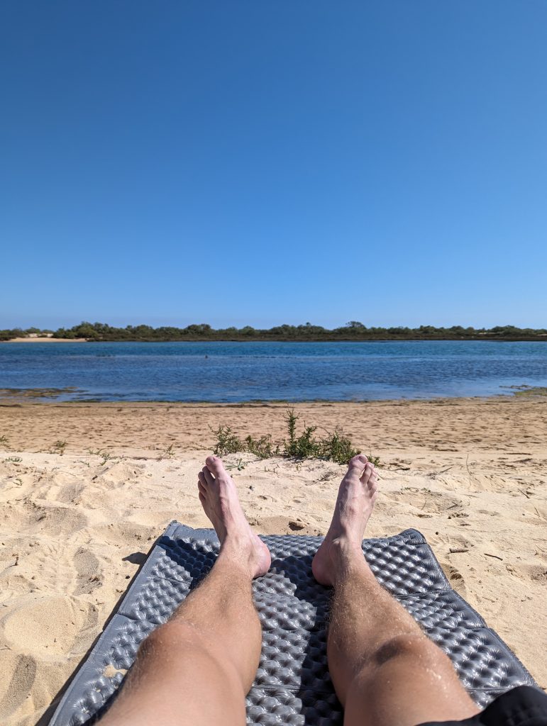 Since I was alone the whole time and wasn’t in a rush, at some point I spread out my sleeping mat right next to the water and lay in the sun for a few minutes.