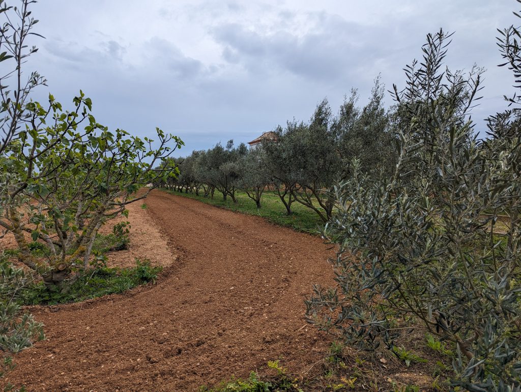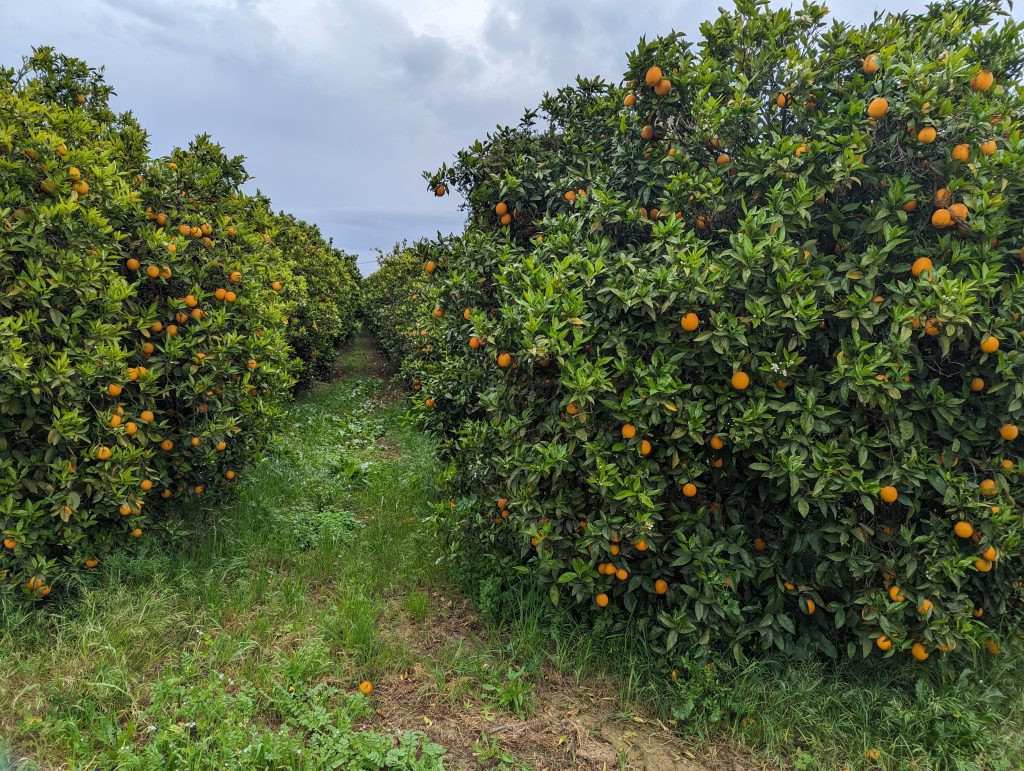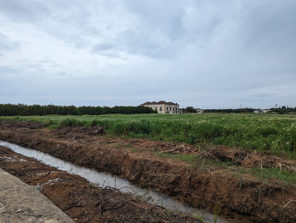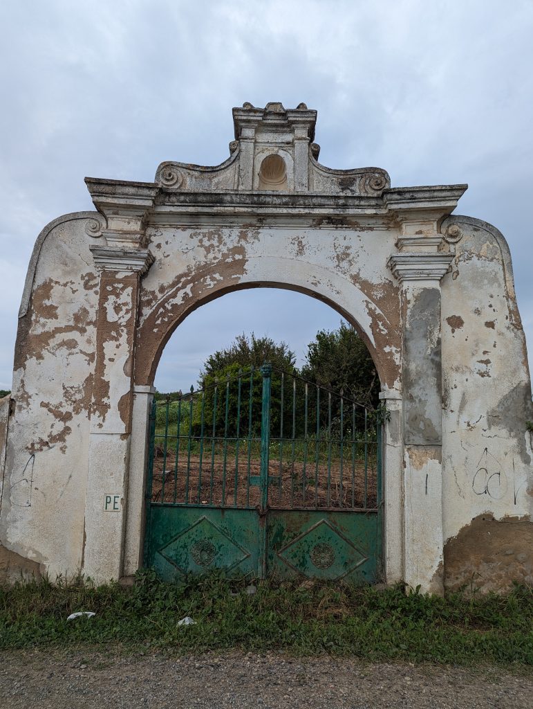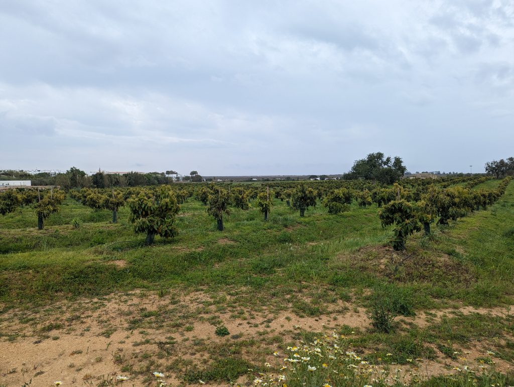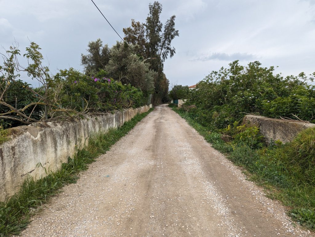 This was followed by a longer section along orchards. Sometimes I passed orange trees and sometimes figs. Not all of the farms really looked farmed, but sometimes just the gate was a bit run down.