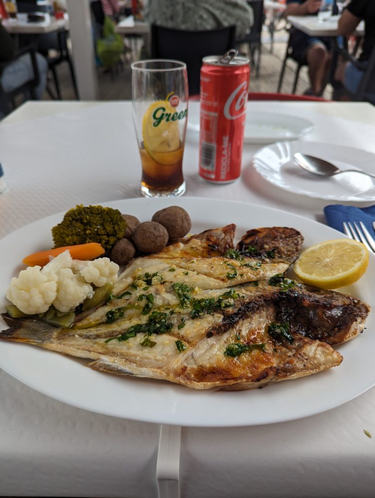When I arrived in Fuseta at lunchtime and saw a nice restaurant right on the harbor, I stopped in there and ate a delicious sea bream.