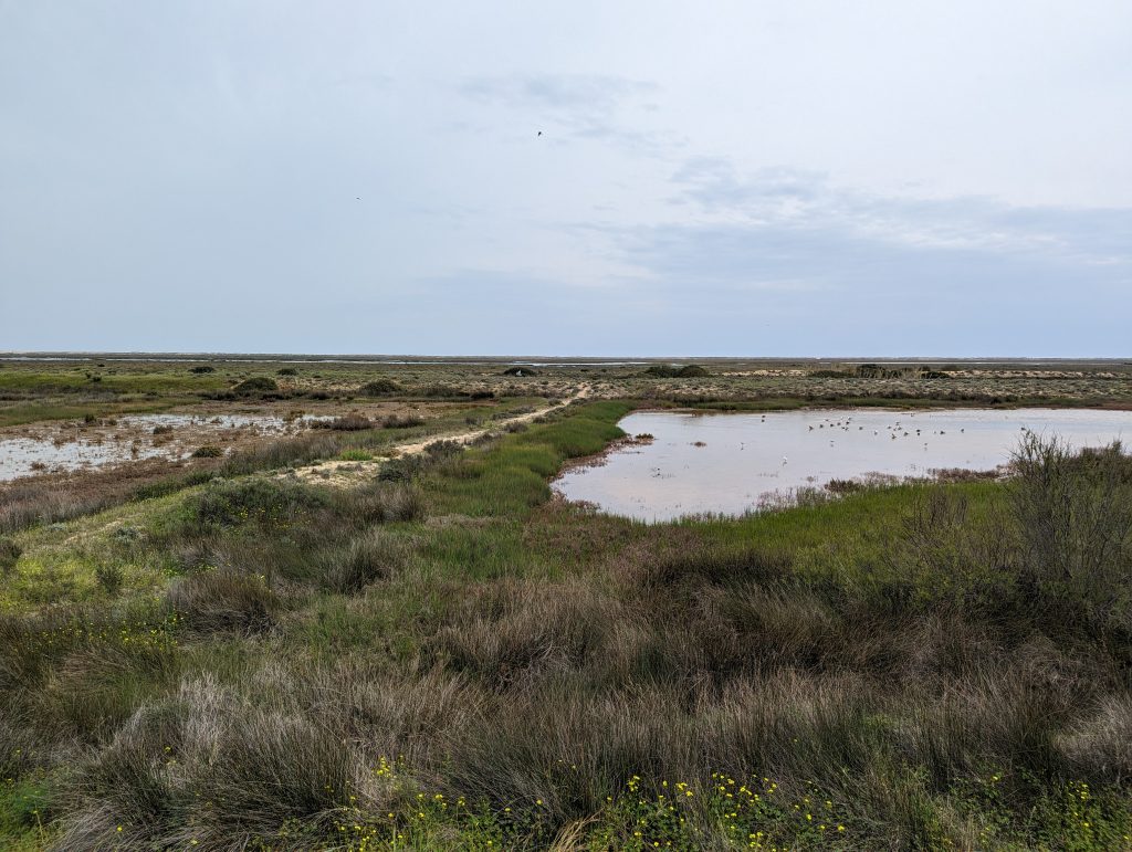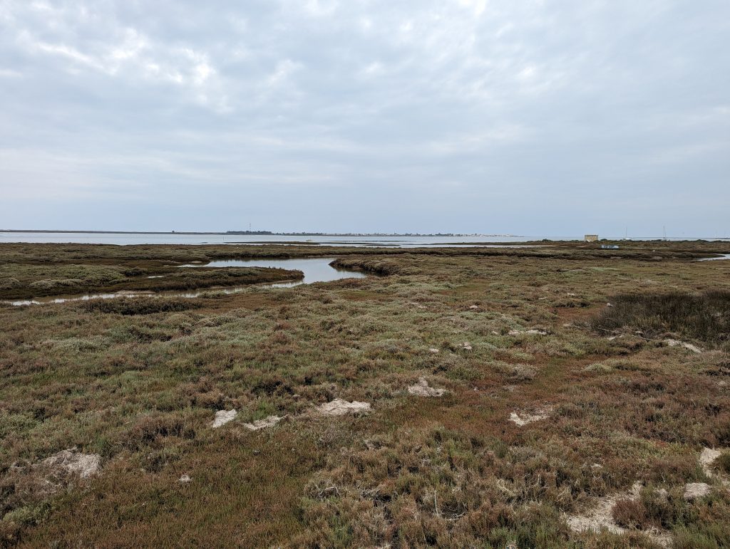 After the salt works there was a section through a larger wetland, although the path here was at least very well developed and so I kept walking along wooden footbridges at a fast pace.