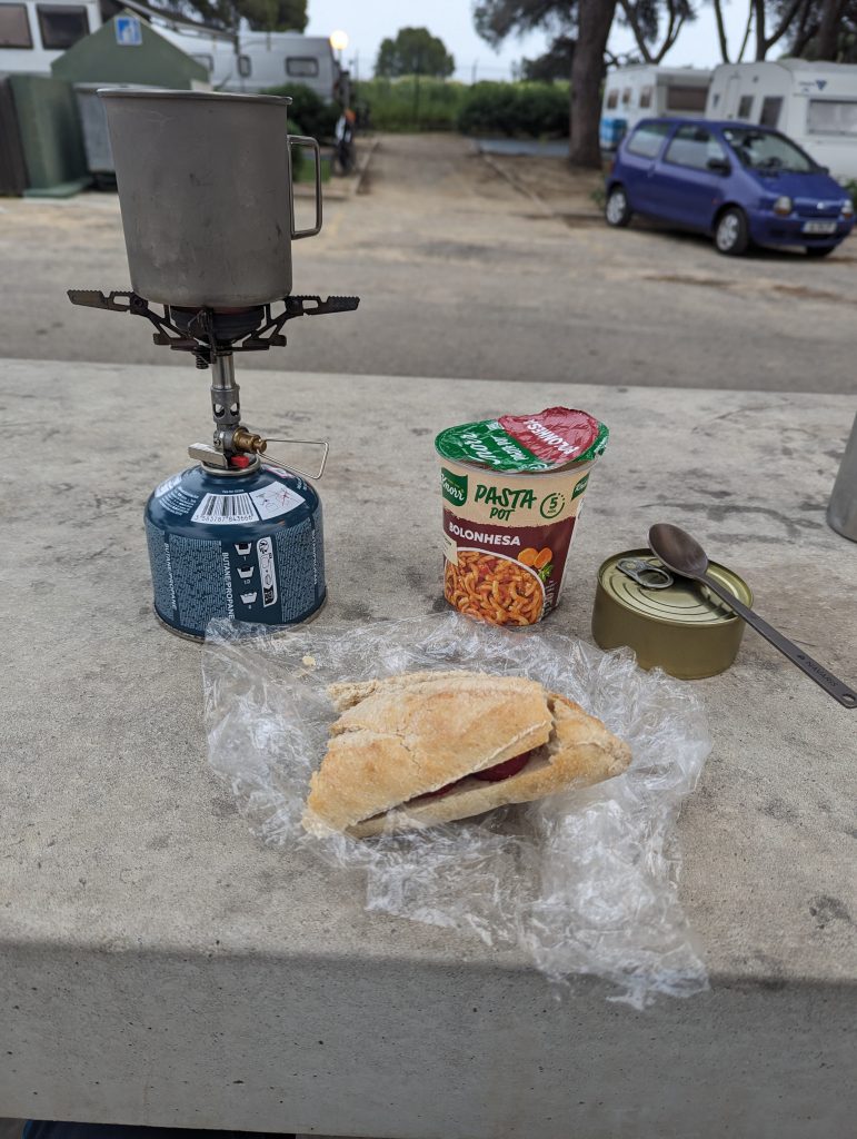 When I finally arrived in Olhao, I quickly turned off, left the main road and headed straight to the campsite. Unfortunately, the place for the tents was at the back end and so I strolled another 500 meters across the large campsite, only to realize that there were only mobile homes there apart from my tent. Since it felt like there were only people 50+ here, I didn’t really get the feeling of camping and so I soon holed up in my tent after a poor dinner.