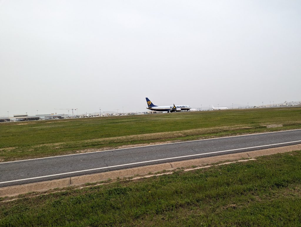Then we went around the airport. Here I could always see planes taking off and landing and the ground staff, who were making their rounds along the fence in their cars, always waved happily to me. Somehow the runway was longer than expected and so the route took quite a long time.