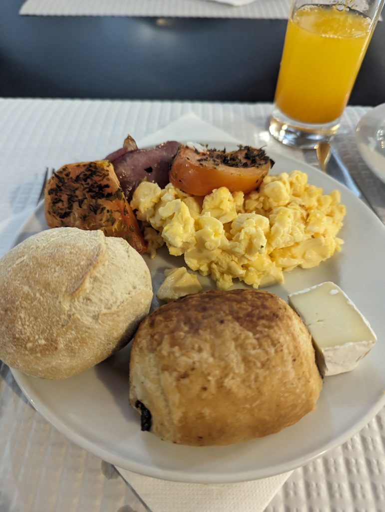 Even though I had booked the cheapest hotel, the breakfast was really great and I spent some time replenishing my energy reserves. After not eating much last night, I had to run to the buffet more often today to satisfy my morning hunger. Here is a picture of my first plate.