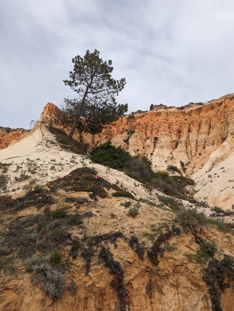 I followed smaller paths along the coast. Over time, the slopes became steeper and higher and soon I was on a kind of cliff, from which I could still see the beach in front of me.