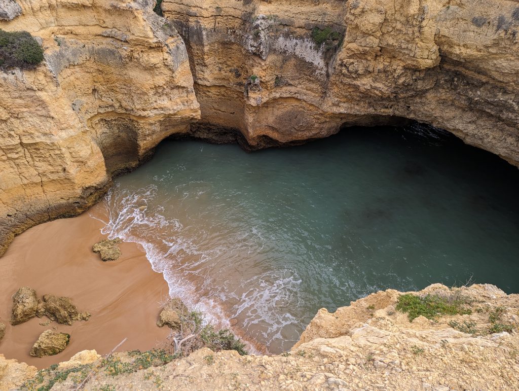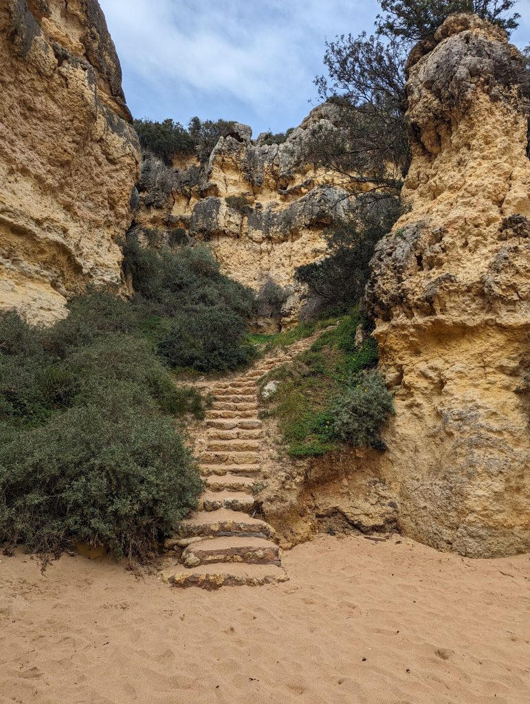 At one point I was able to find a small hidden beach. The water came under the rocks and the beach was completely enclosed by a steep rock wall. I still got down a small staircase and took a closer look at everything.