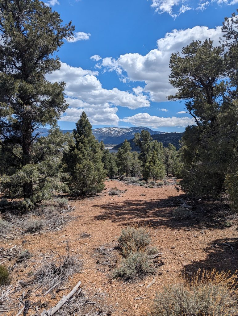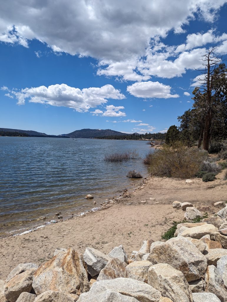 I quickly walk on the easy-to-go path through the forest. After a short climb, it goes slowly but steadily downhill. On the way I get a good view of Big Bear Lake and I’ll meet a deer, which quickly disappears into the bushes. Since most of the time is relaxed today, I quickly cover a few kilometers.