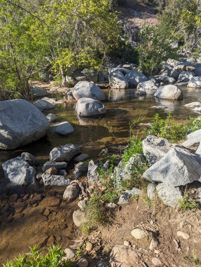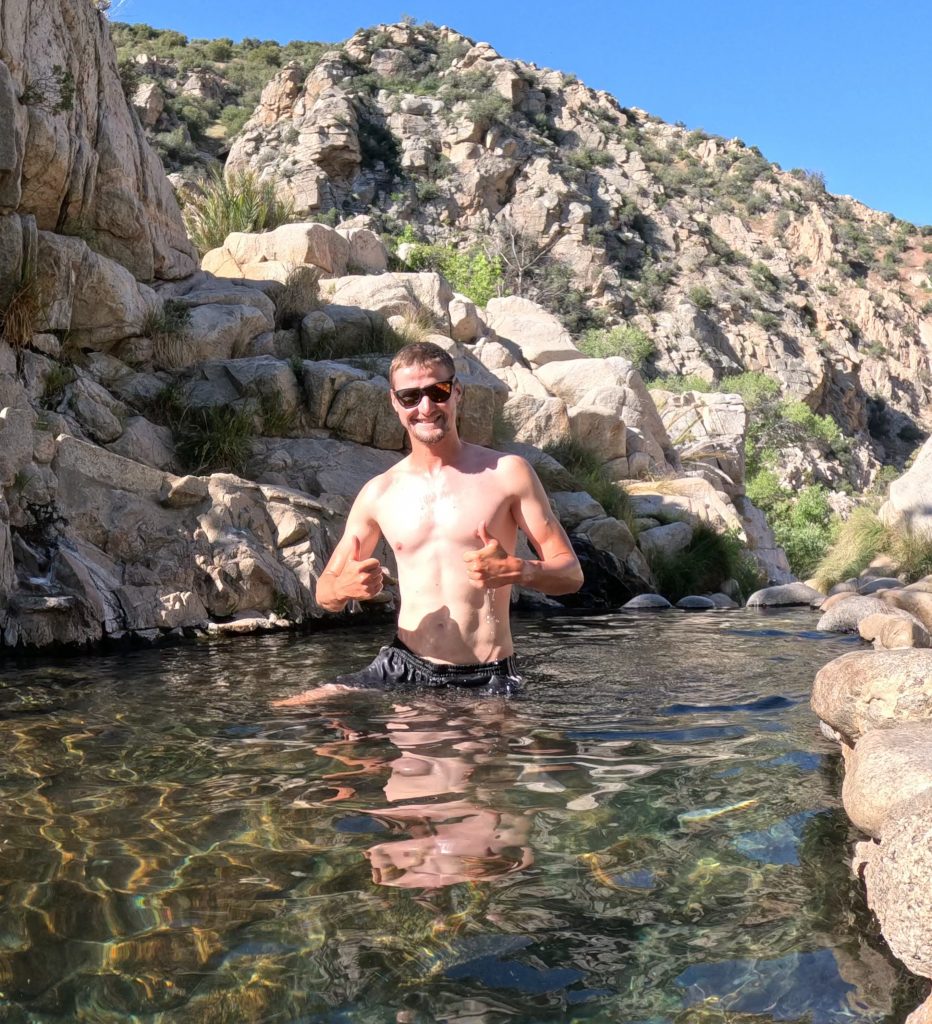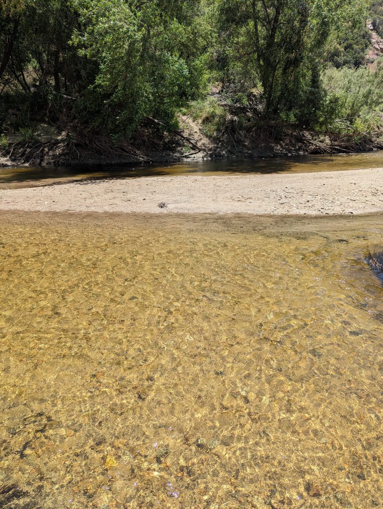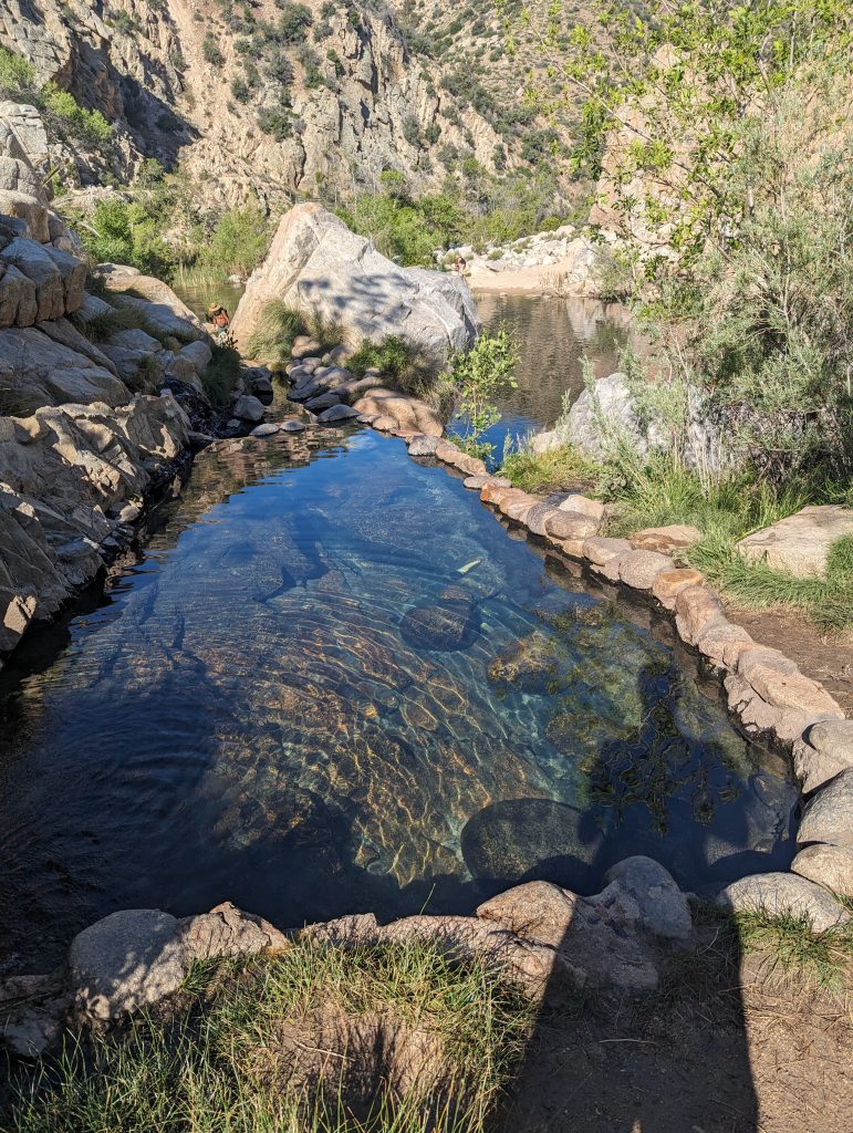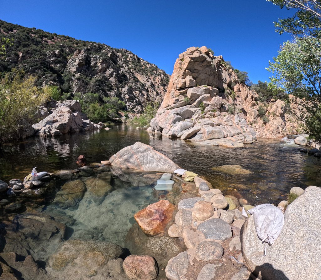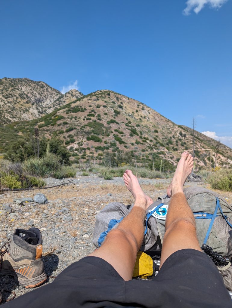 After a few minutes I sit in one of the warm pools. The water feels like 40 degrees and I notice how it relaxes the muscles. After such a long time on the road, it really feels like a day of wellness. I switch back and forth between the individual pools and in between I always go into the cold river, which is very pleasant. While I’m sitting in one of the warm pools, I’m talking to someone who came here especially for the Hot Springs. In addition to another 5 day tourists, it is otherwise exclusively PCT hikers who relax here in the water. After almost 2 hours in the various pools, all of which are differently warm, I lie down for 20 minutes and recover from the roller coaster ride.
